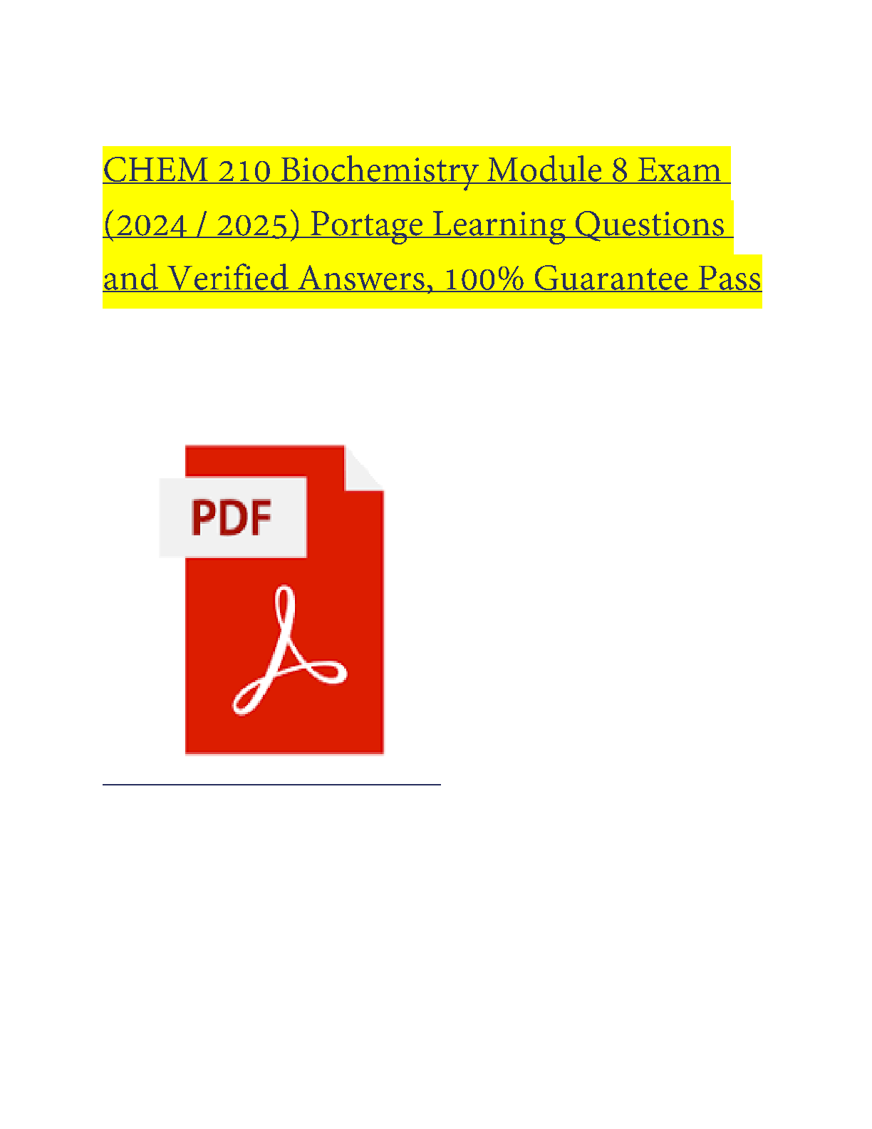 Ace your CHEM 210 Biochemistry Module 8 exam with this comprehensive resource of Portage Learning questions and verified answers. Designed for the 2024-2025 academic year, this study guide ensures a first-attempt pass, helping you avoid costly resits. Get the confidence you need to succeed!