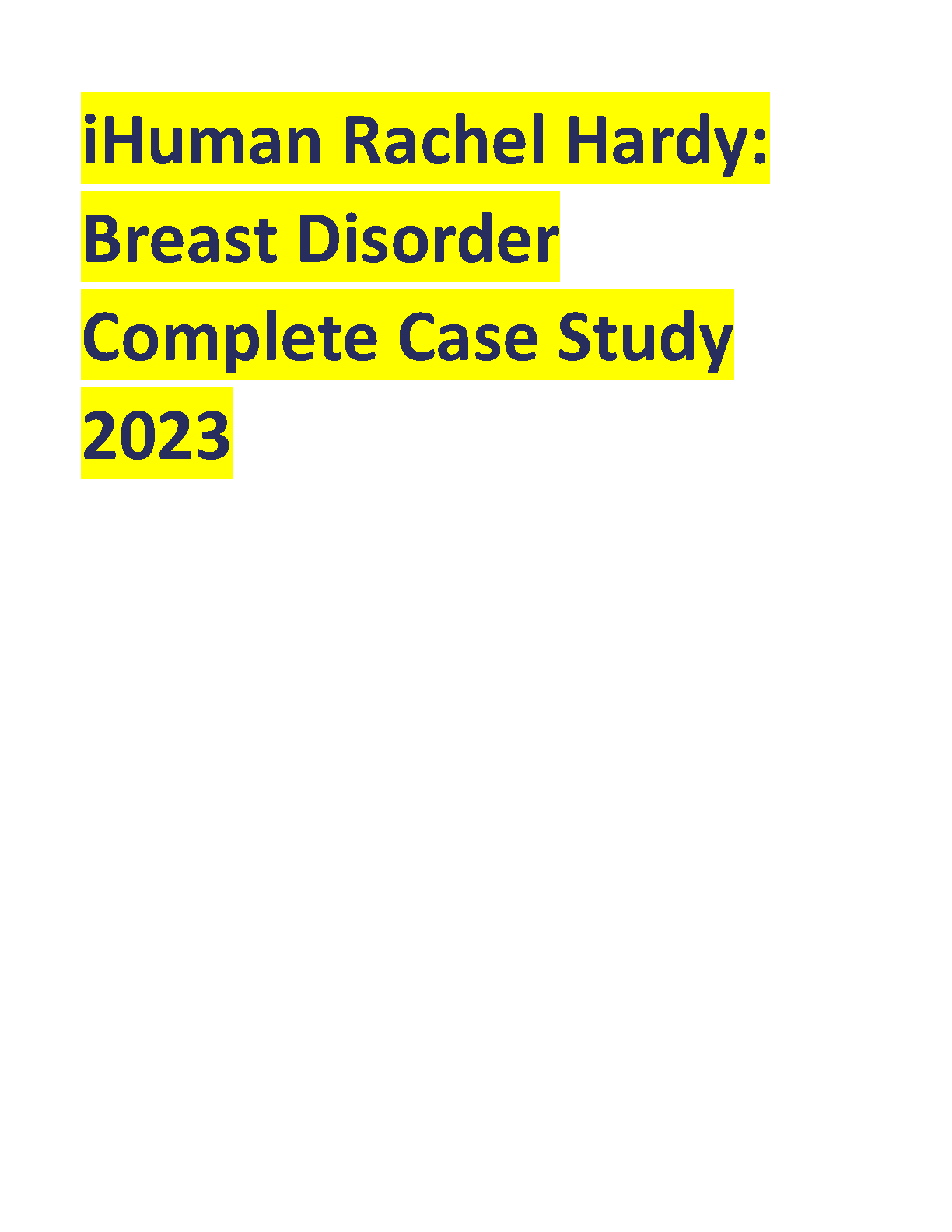 Ace your iHuman simulation with this comprehensive case study solution for Rachel Hardy's breast disorder. This 2023 guide provides a detailed walkthrough, ensuring you understand the diagnosis, treatment, and management of this complex case. Avoid resits and achieve exam success on your first attempt!