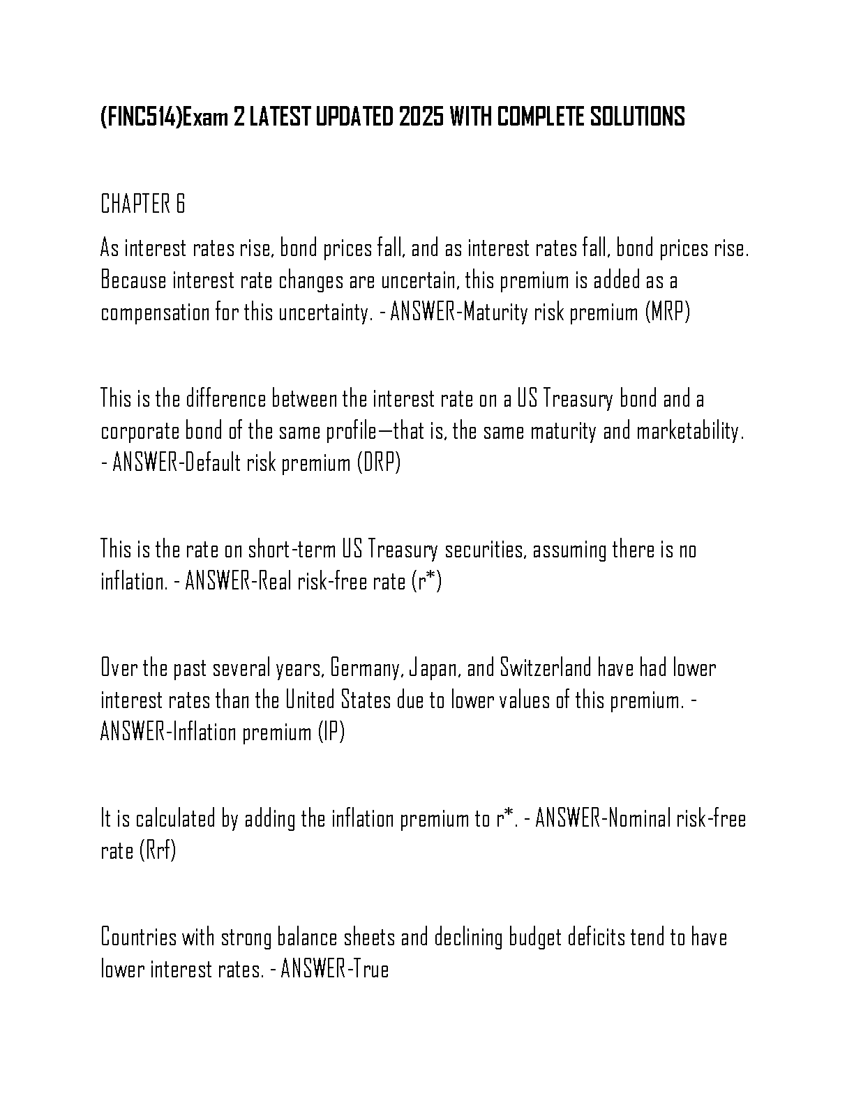 Ace your FINC514 Exam 2 with this comprehensive solution manual. This updated 2025 edition provides complete answers and explanations, ensuring you understand t...