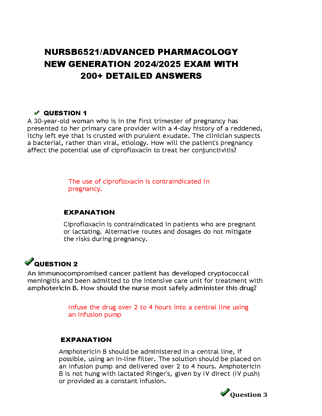 Ace your NURSB6521 Advanced Pharmacology exam with this comprehensive guide featuring 200+ detailed answers to practice questions. Prepare effectively for the 2024/2025 academic year and pass on your first attempt. This resource covers key concepts and prepares you for exam success.
