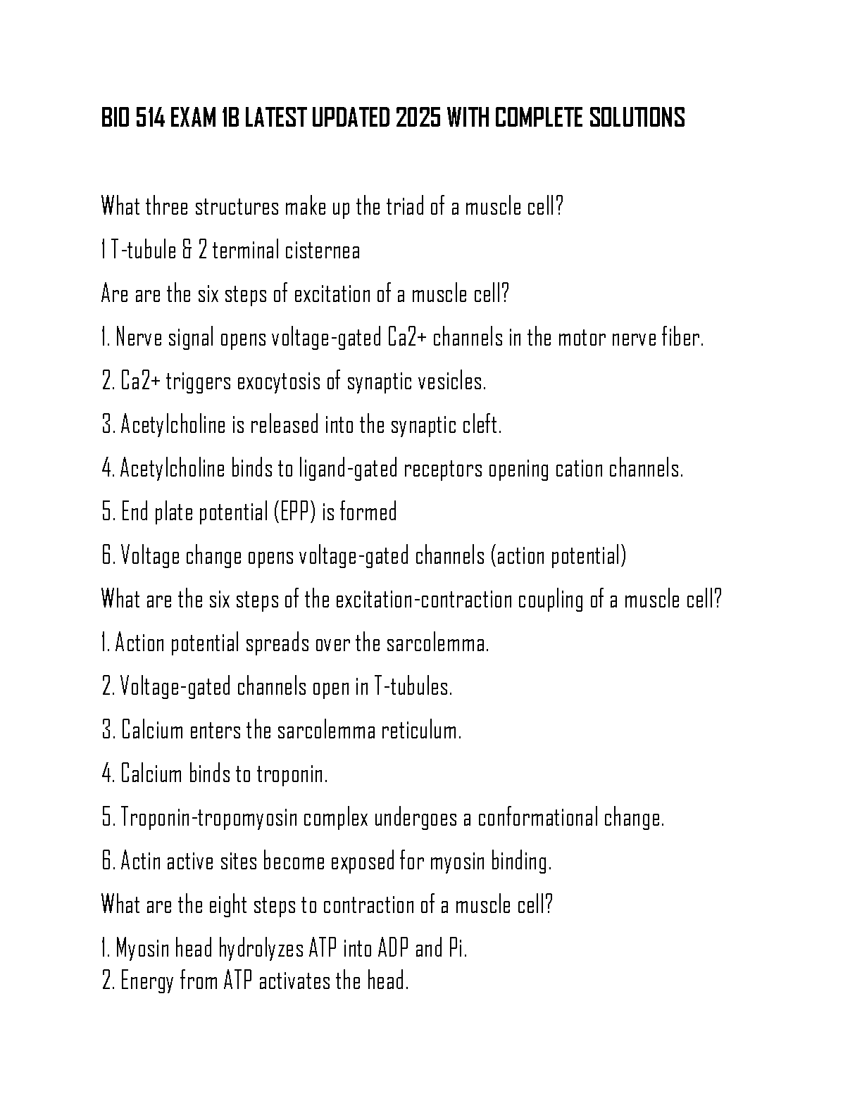 Ace your BIO 514 Exam 1B with this comprehensive guide. This updated 2025 edition provides complete solutions to help students understand key concepts and achieve exam success on their first attempt, avoiding resits. Master muscle cell structures, excitation, and contraction processes with detailed explanations.
