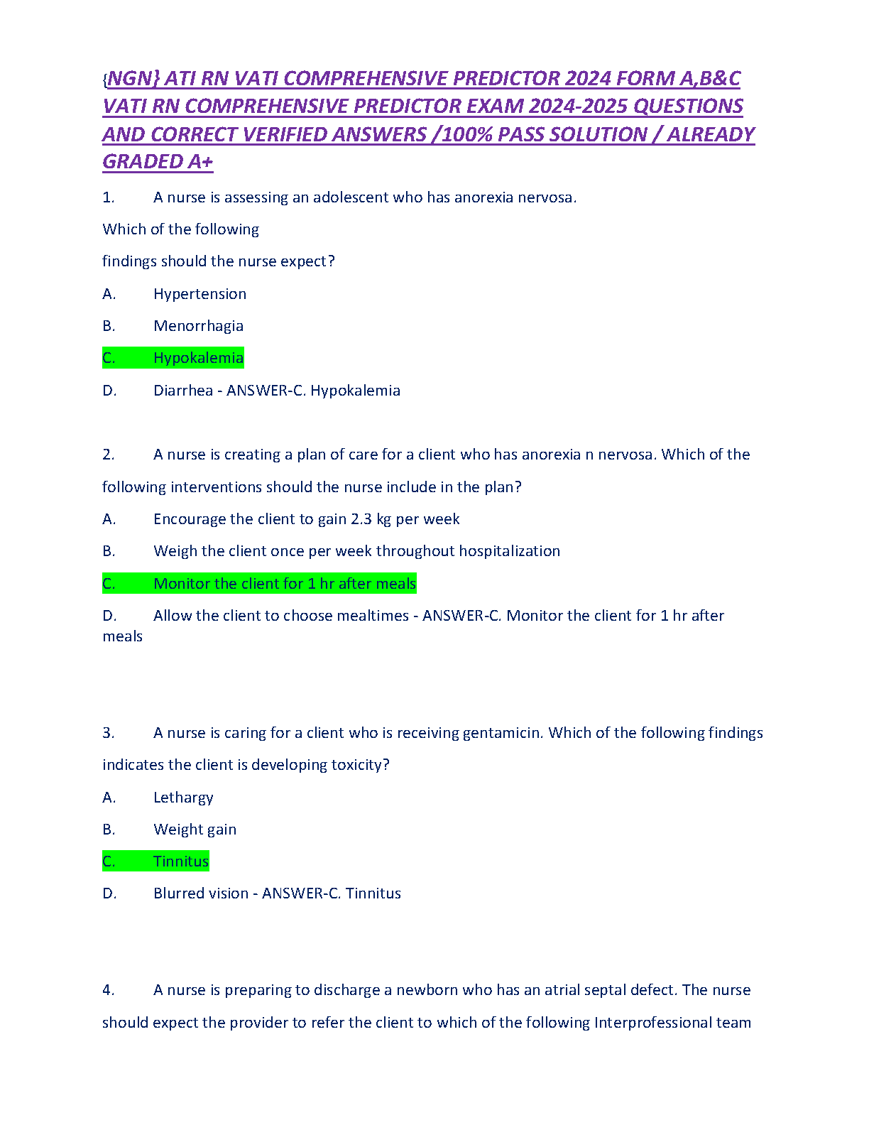 ATI RN VATI Comprehensive Predictor 2024-2025 Forms A, B & C Exam Questions and Answers by [Author Name]