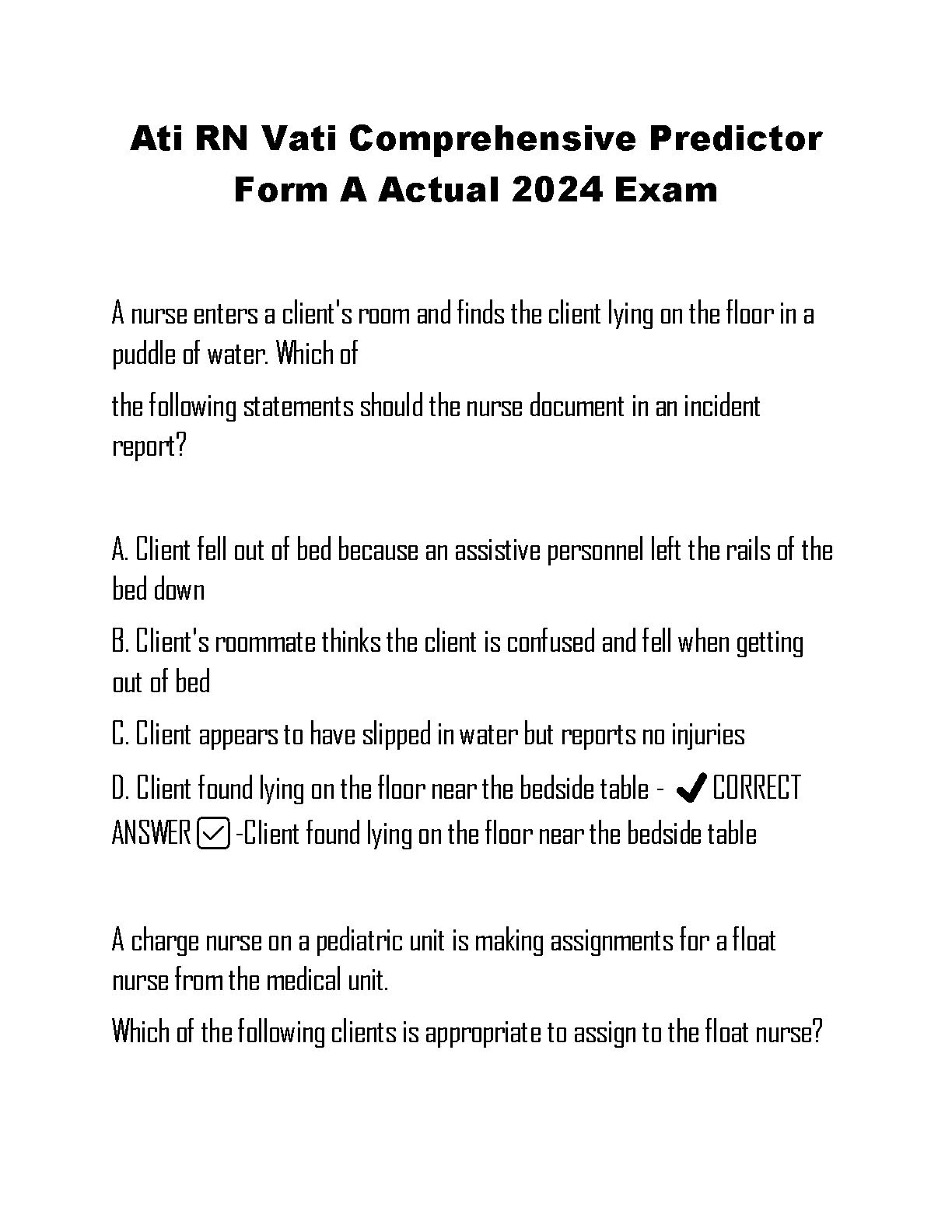 Ati RN Vati Comprehensive Predictor Form A Actual 2024 Exam: Ace Your Nursing Exams!