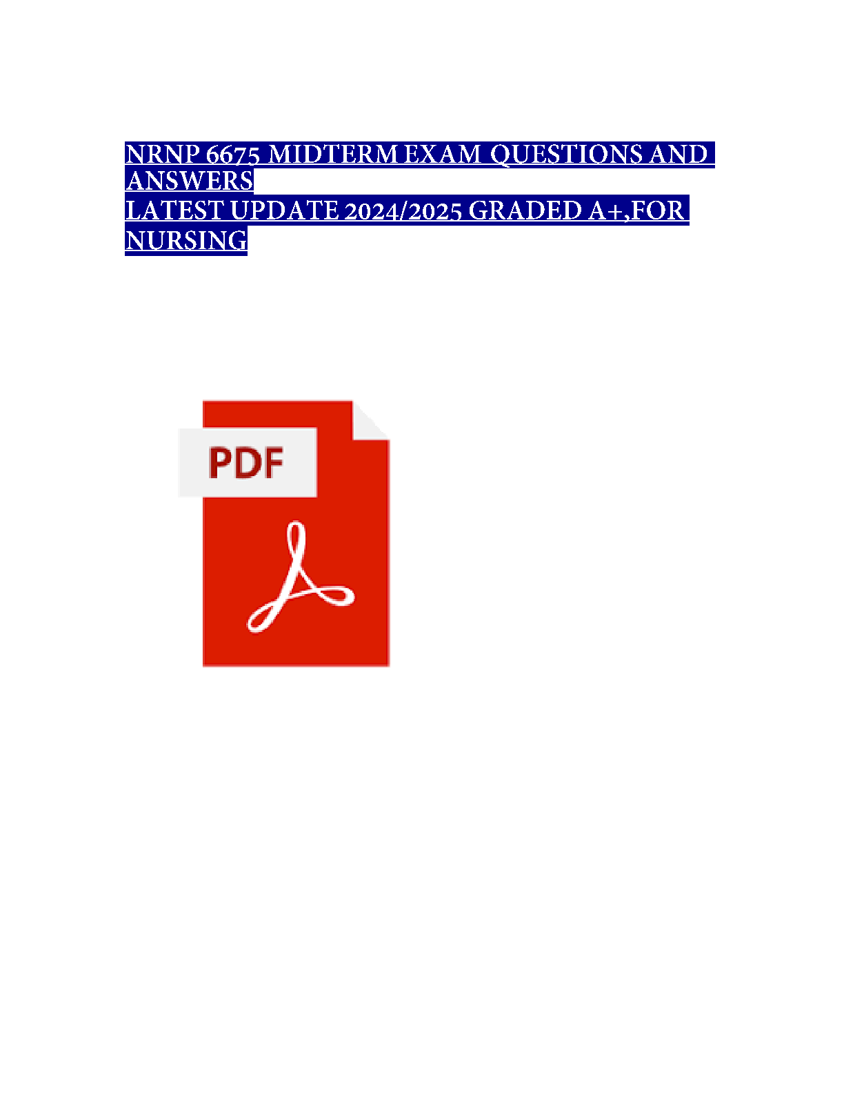 Prepare for your NRNP 6675 midterm exam with confidence using our comprehensive study guide. This updated 2024/2025 resource contains questions and answers graded A+ by nursing students, ensuring you achieve the best possible score and avoid resits. Download now and start acing your exams!