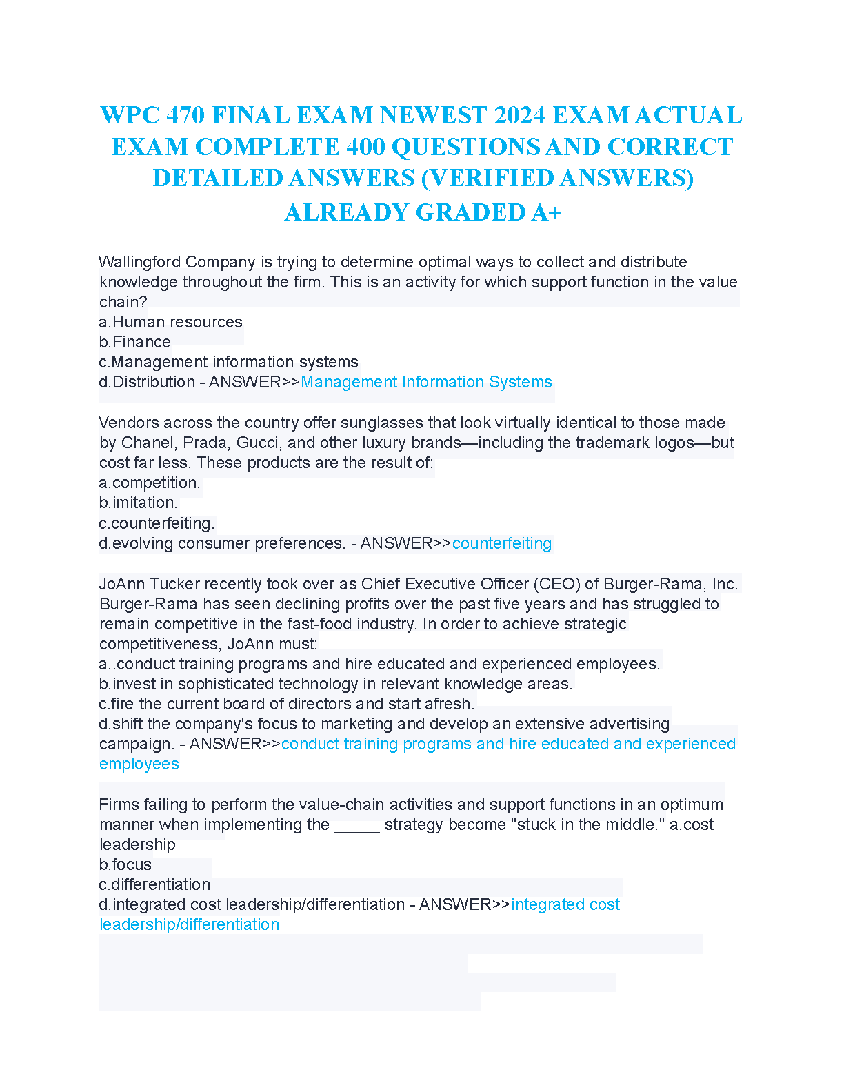 Ace your WPC 470 final exam with this comprehensive study guide. This resource contains 400 detailed questions and verified answers, ensuring you're fully prepared for exam success on your first attempt. Avoid resits and achieve an A+ with our latest 2024/2025 edition.