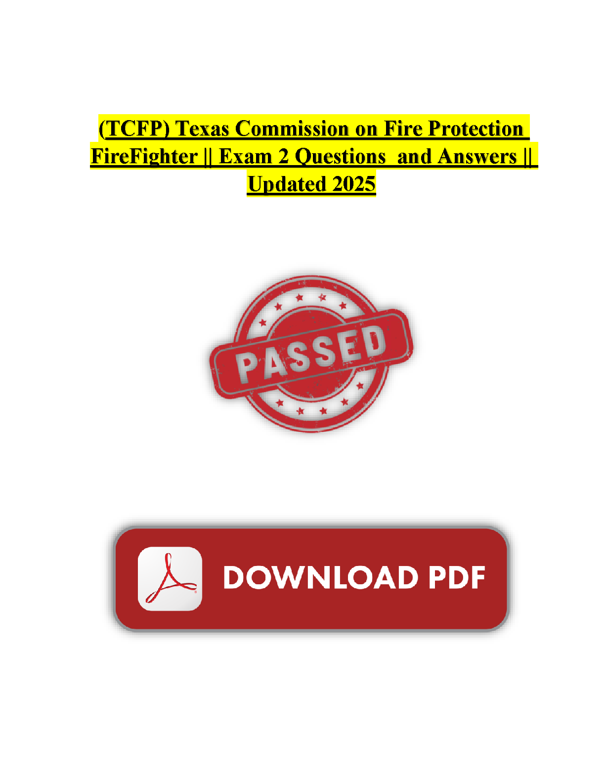 Texas Commission on Fire Protection (TCFP) FireFighter Exam 2 Questions and Answers - Updated 2025 Edition