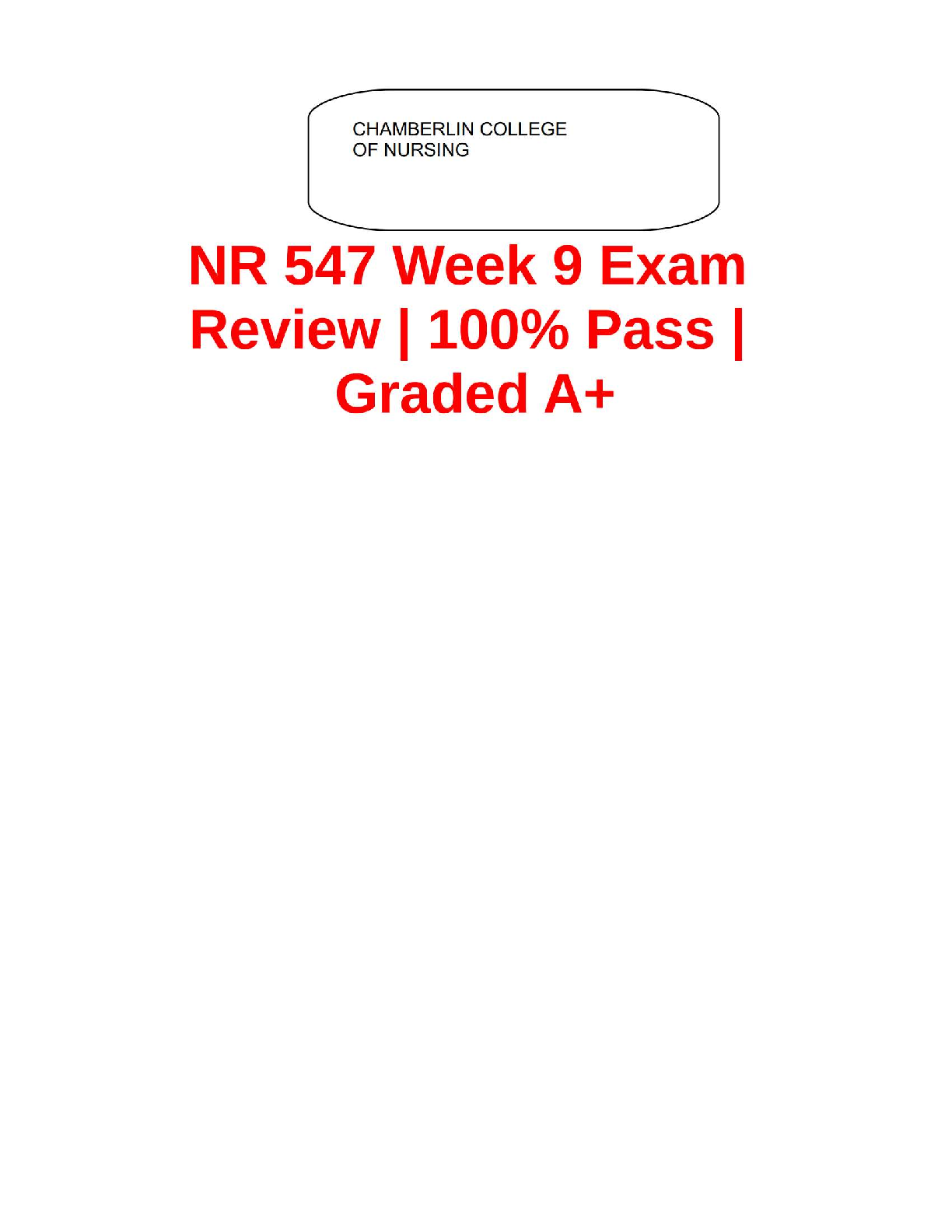 Conquer your Chamberlain College of Nursing NR 547 Week 9 exam with confidence! This expertly crafted review guide guarantees a 100% pass rate. Get ahead of the curve and avoid resits with this A+ graded study material, designed to help you master the course content and excel in your exams. Ideal for the 2024/2025 academic year.
