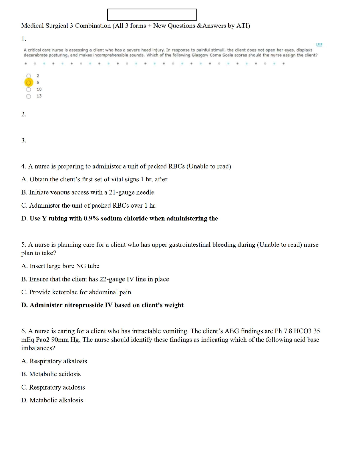 ATI Medical Surgical 3 Combination: 2024-2025 Edition - Exam Prep Questions & Answers