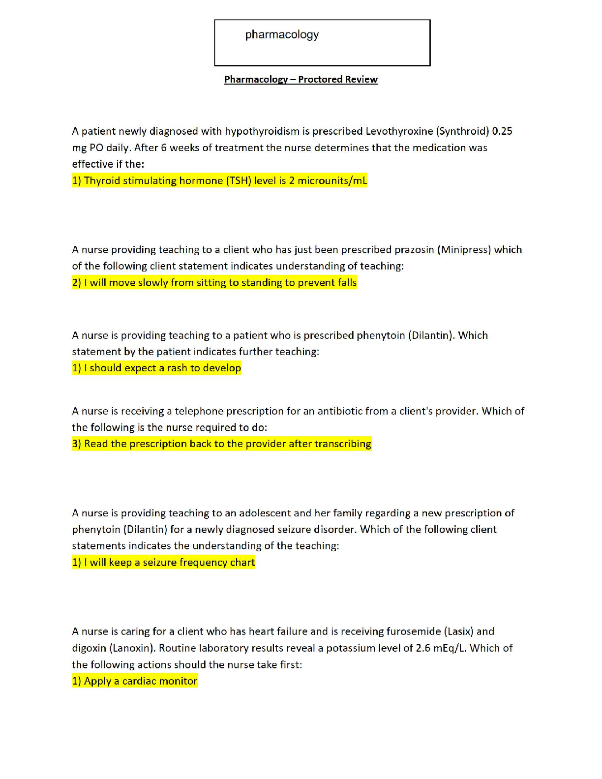2024-2025 Pharmacology Proctored Review Questions and Answers: Ace Your Exams!