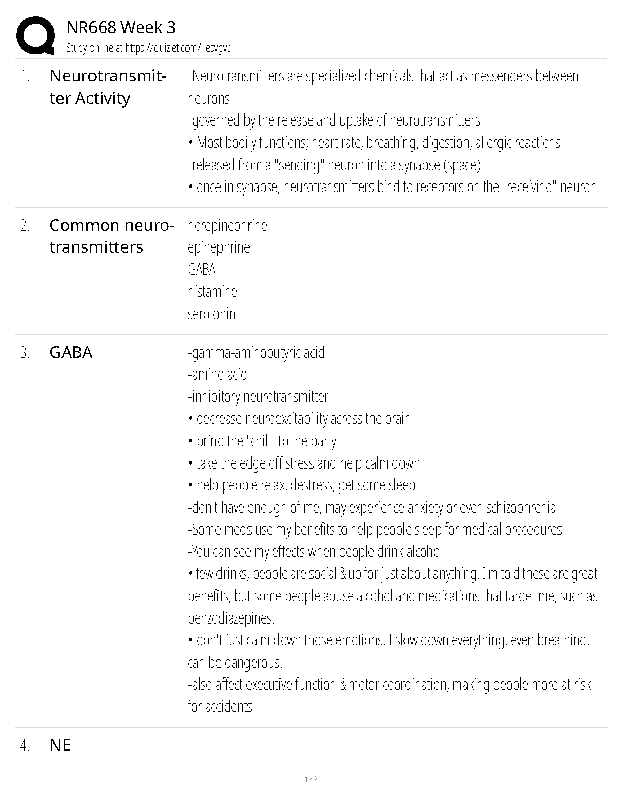 Master neurotransmitters with this comprehensive study guide designed for NR668 students. This resource covers key concepts, including neurotransmitter activity...