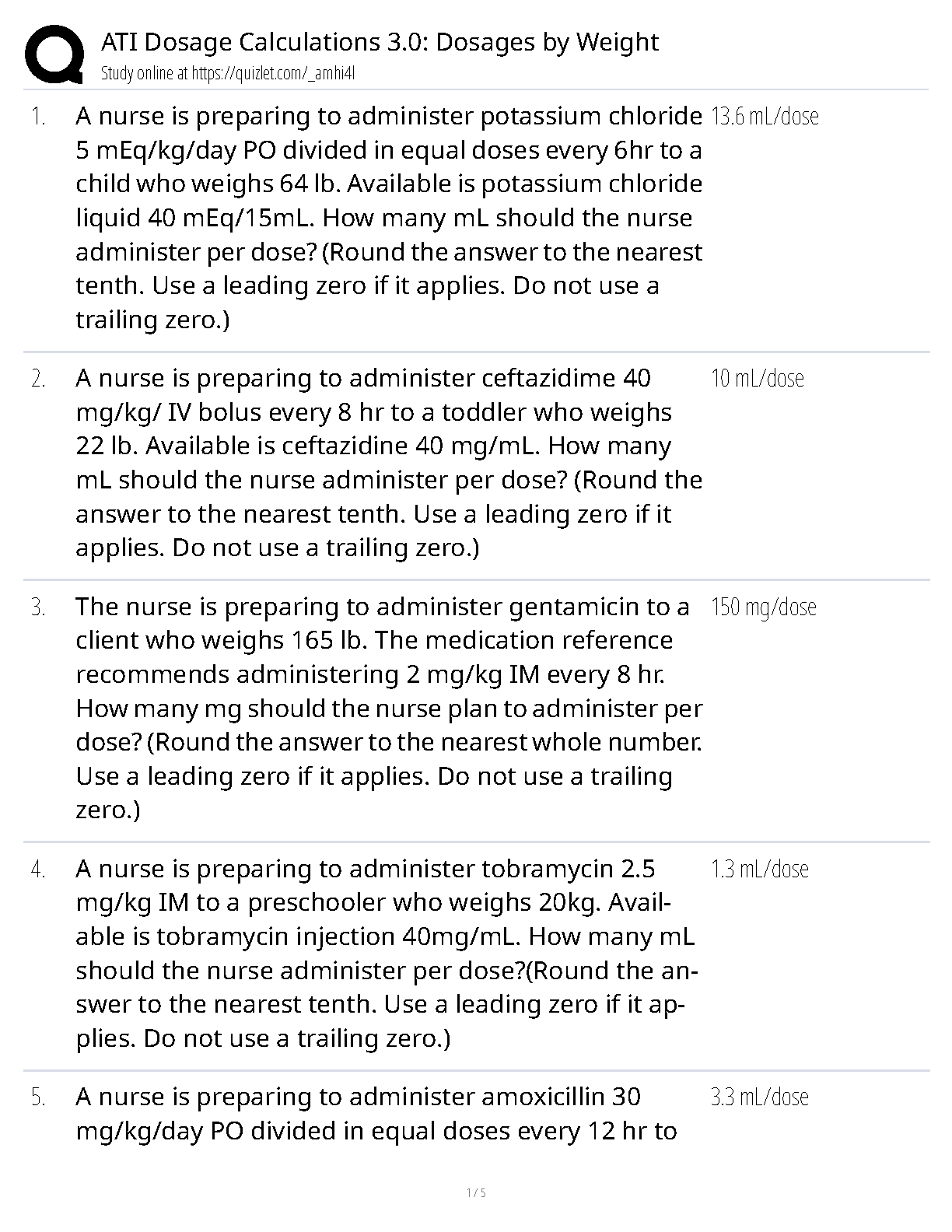 ATI Dosage Calculations 3.0: Dosages by Weight - Practice Questions for Nursing Students