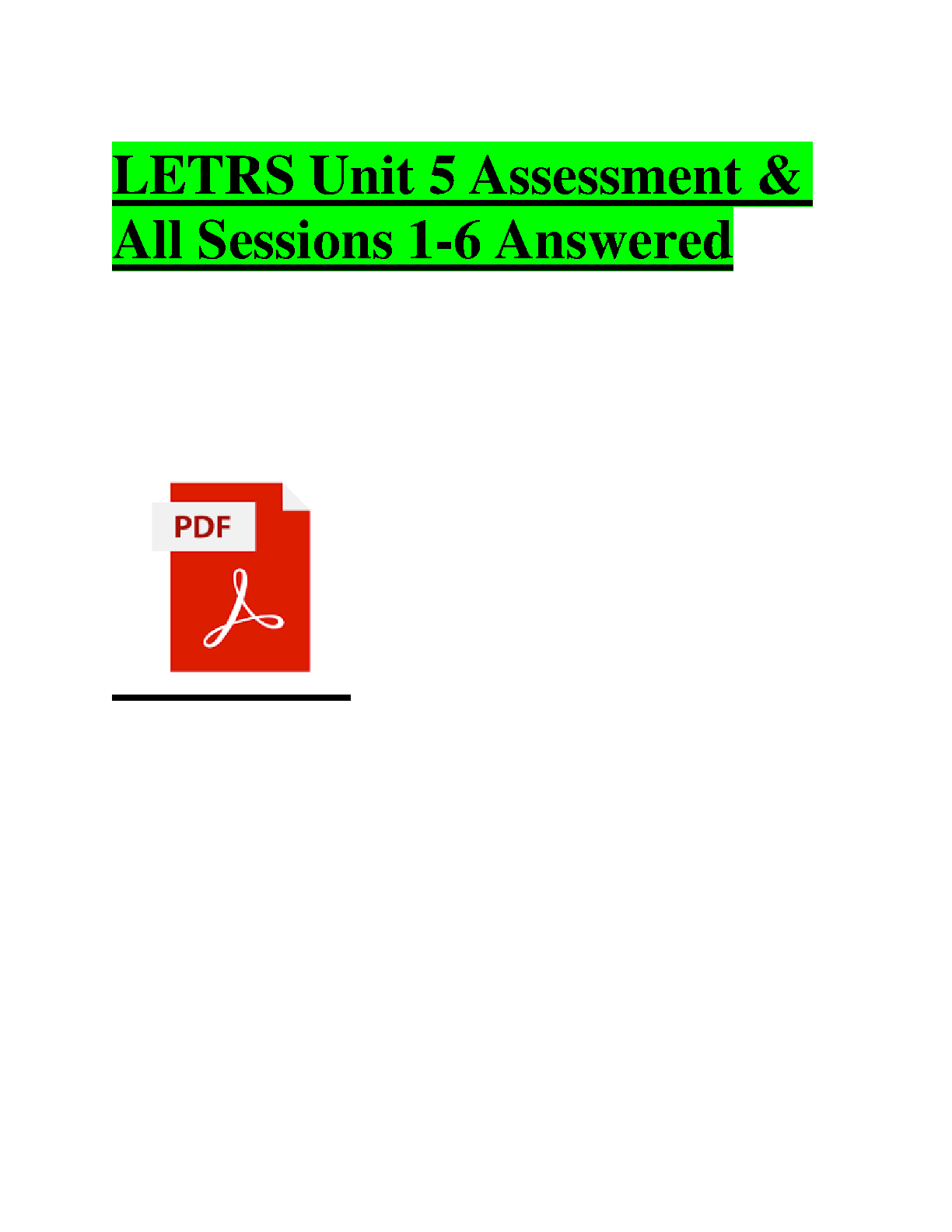 Ace your LETRS Unit 5 assessments with this comprehensive guide containing answered solutions for all sessions 1-6. This resource is designed to help students u...