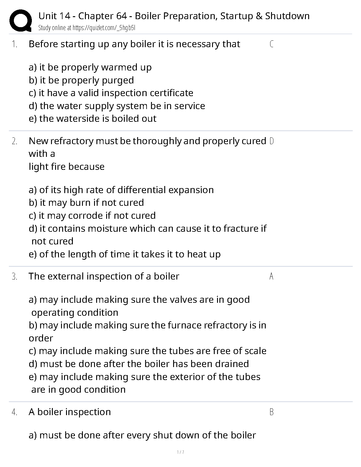 Boiler Preparation, Startup & Shutdown Quiz: A Comprehensive Guide for 2024/2025 Exams