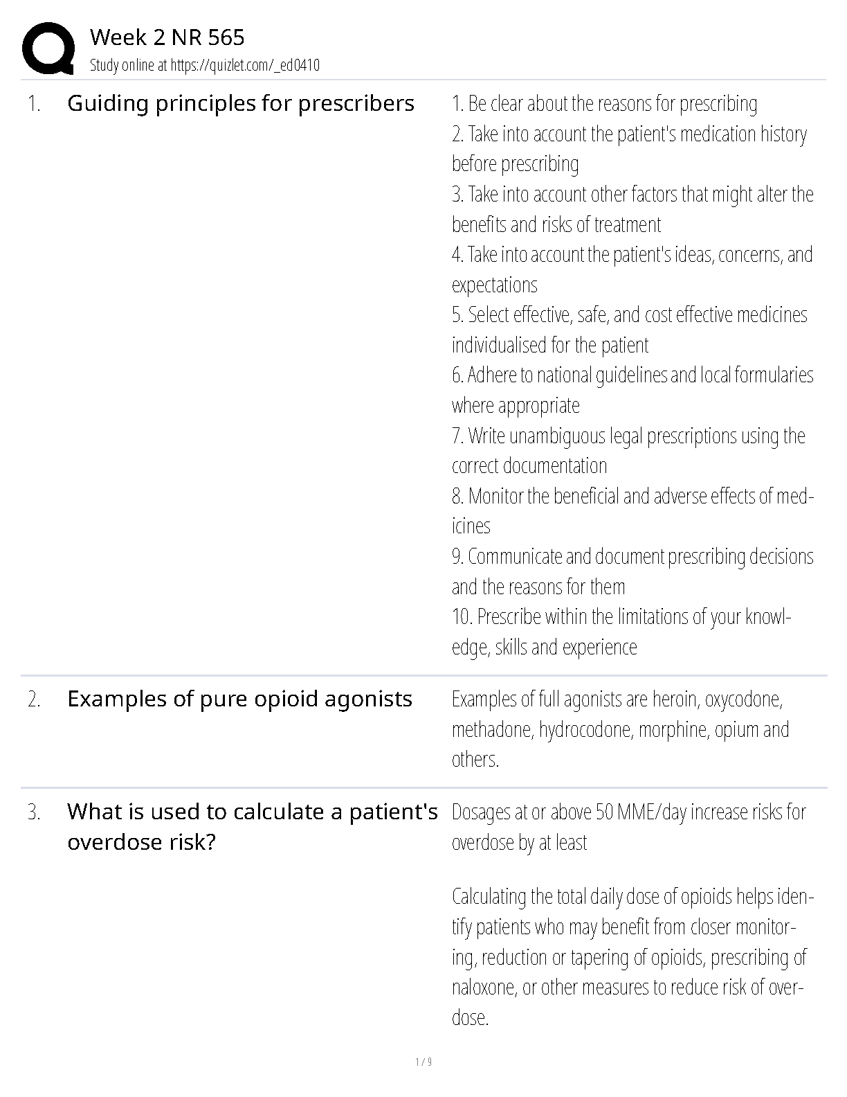 NR 565 Week 2 Study Guide: Guiding Principles for Prescribers - 2024/2025 Edition