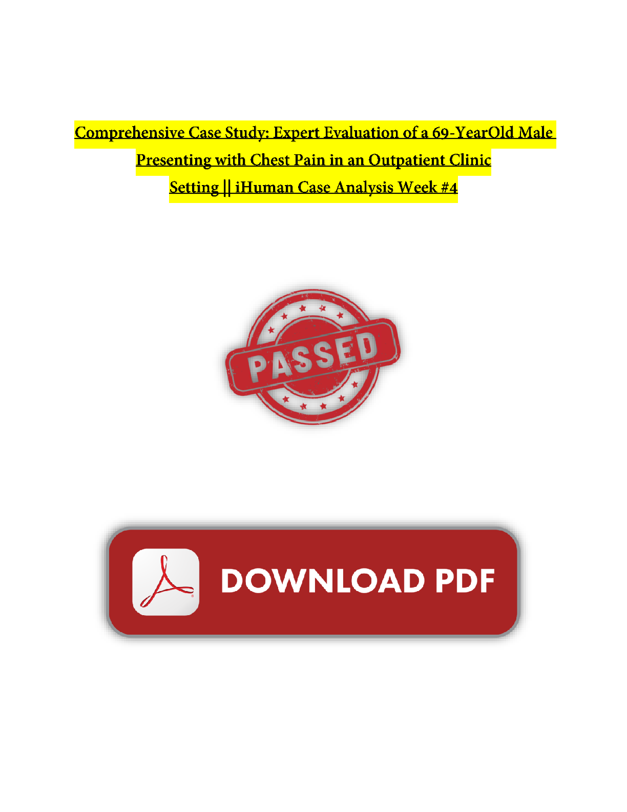 Ace your iHuman Case Analysis with this comprehensive case study focusing on a 69-year-old male experiencing chest pain in an outpatient clinic setting. This expert-level evaluation will help you understand the nuances of diagnosing and treating such cases, increasing your chances of passing the exam on the first attempt. Download the PDF now and avoid resits!