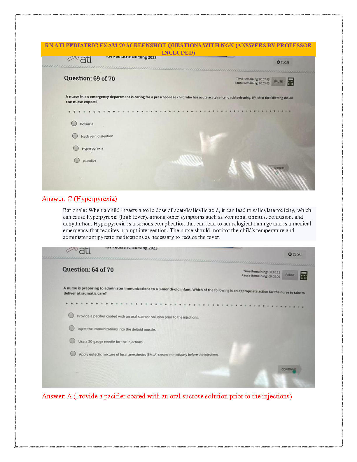 ATI RN Pediatric Nursing 2023 Exam: 70 Screenshot Questions with Answers by Professor - Pass Your Exam on the First Attempt!