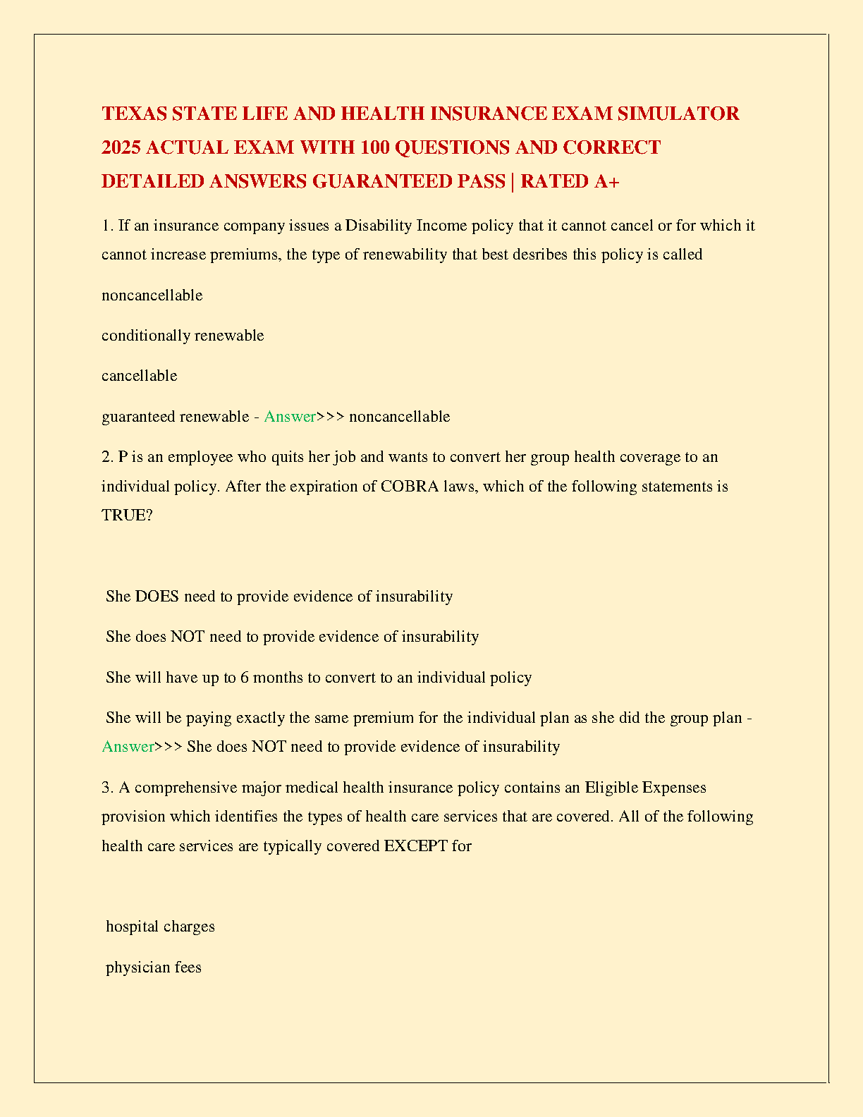 2025 Texas State Life and Health Insurance Exam Simulator: 100 Questions & Answers by [Author Name]