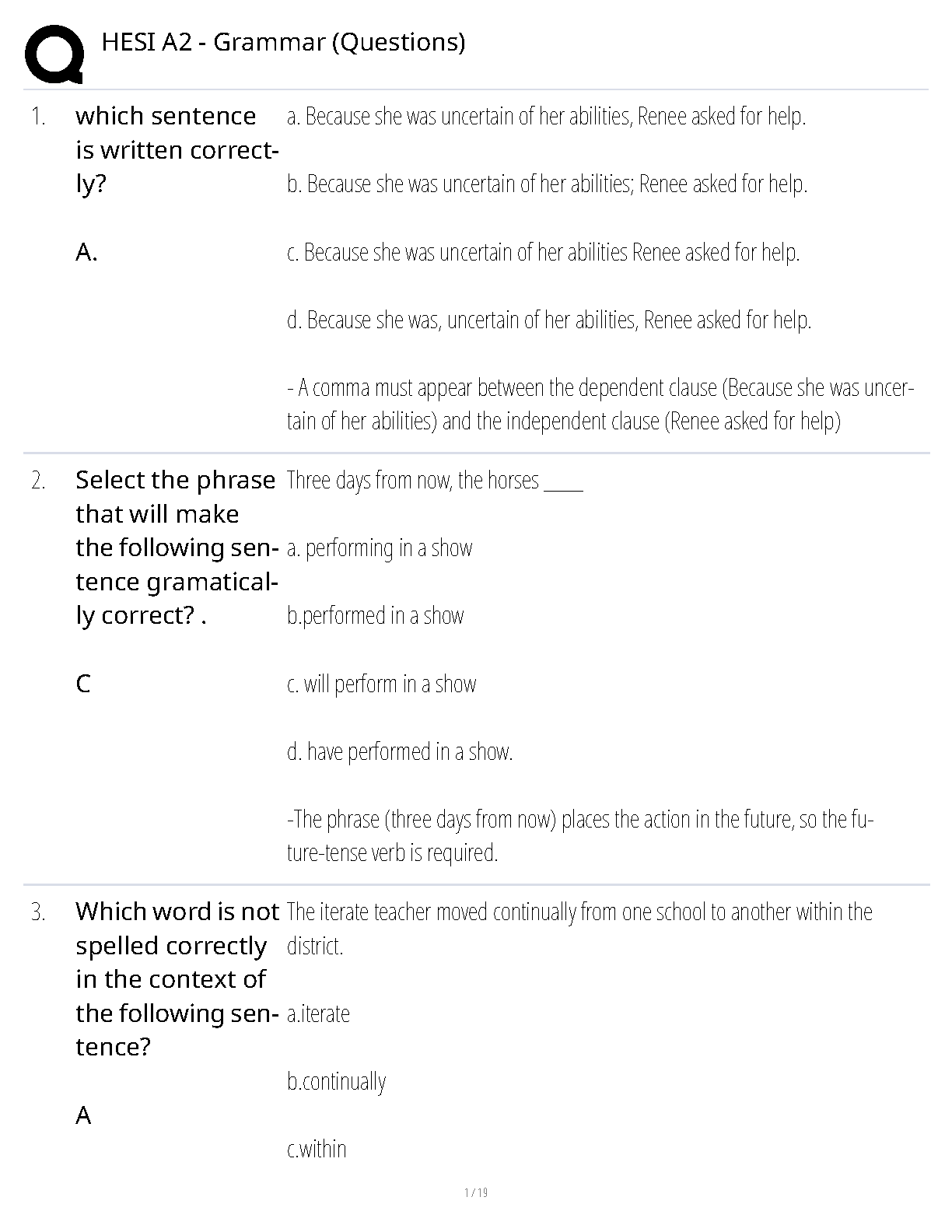 HESI A2 Exam Prep: Grammar Questions and Answers for 2024-2025