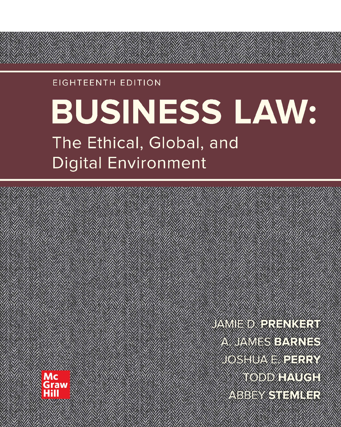 Business Law: The Ethical, Global, and Digital Environment, 18th Edition by Jamie D. Prenkert, A. James Barnes, Joshua E. Perry, Todd Haught, and Abbey Stemler