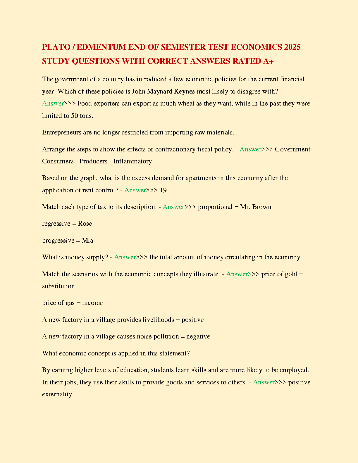 Ace your Plato/Edmentum Economics 2025 final exam with this comprehensive solution guide. Featuring all the correct answers, this resource helps you achieve an...