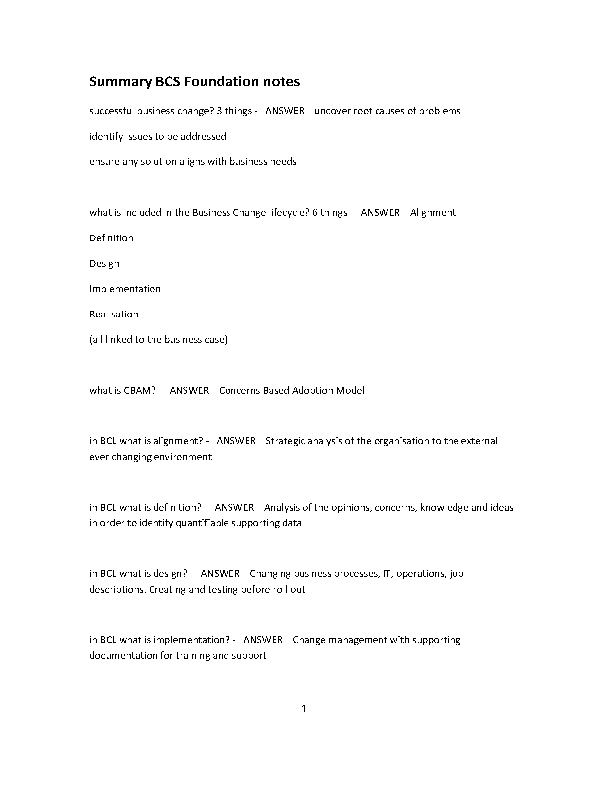 Ace your BCS Foundation exam on your first attempt with these concise and easy-to-understand notes. This resource covers key concepts such as successful busines...