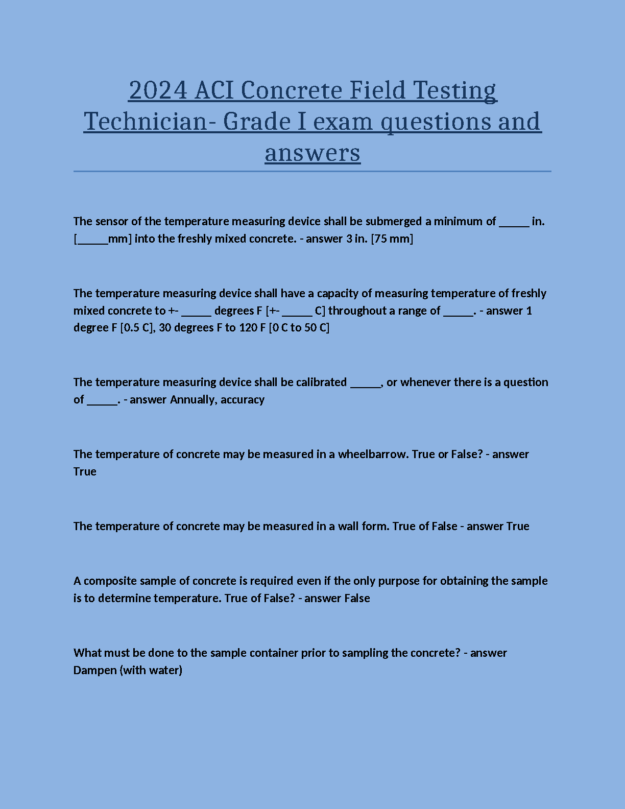 2024 ACI Concrete Field Testing Technician - Grade I Exam Questions and Answers: Ace Your Exam with this Comprehensive Guide