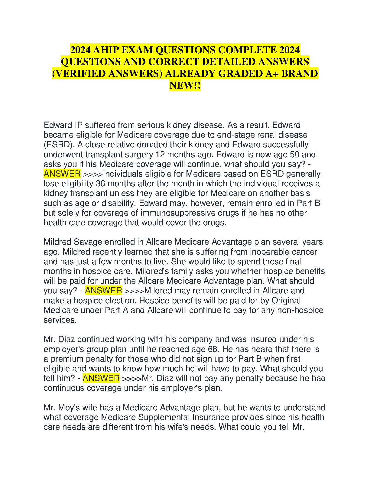 2024 AHIP Exam Questions Complete 2024: Verified Answers by [Author Names]