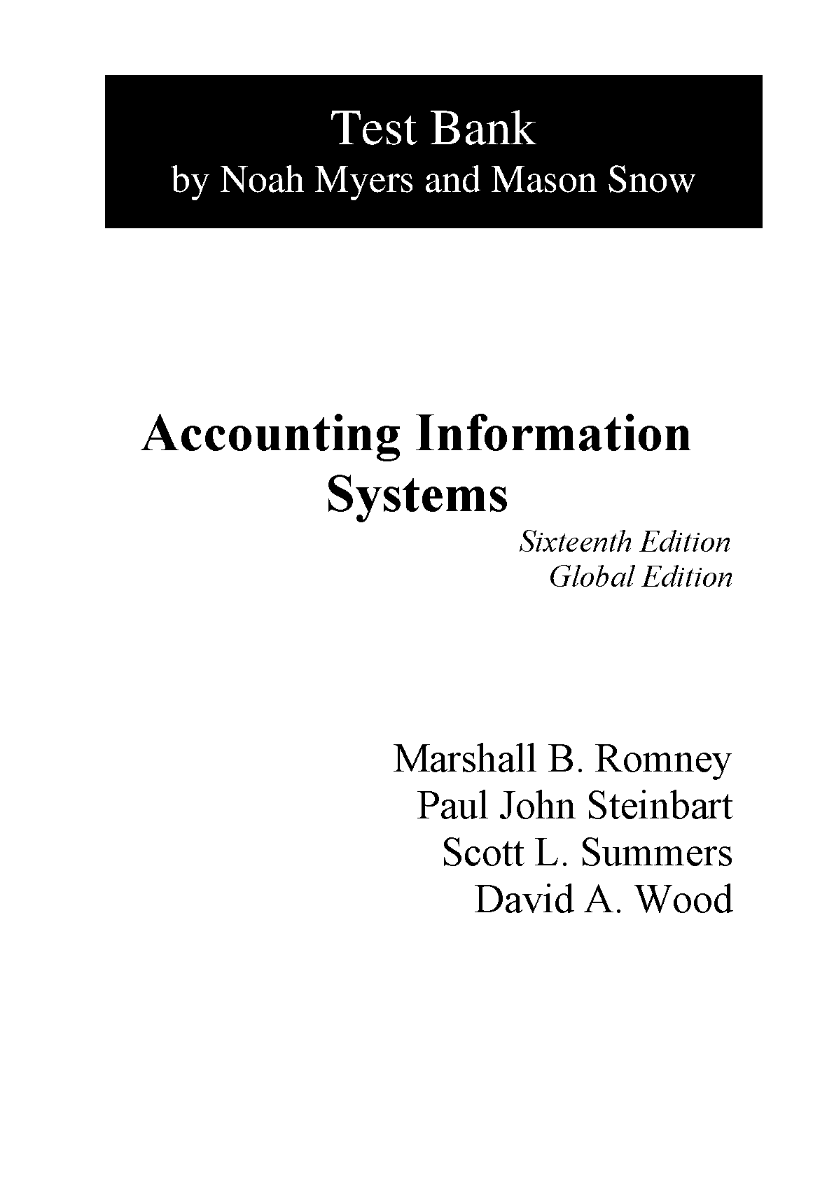 Test Bank for Accounting Information Systems, 16th Edition, Global Edition by Marshall B. Romney, Paul John Steinbart, Scott L. Summers, and David A. Wood