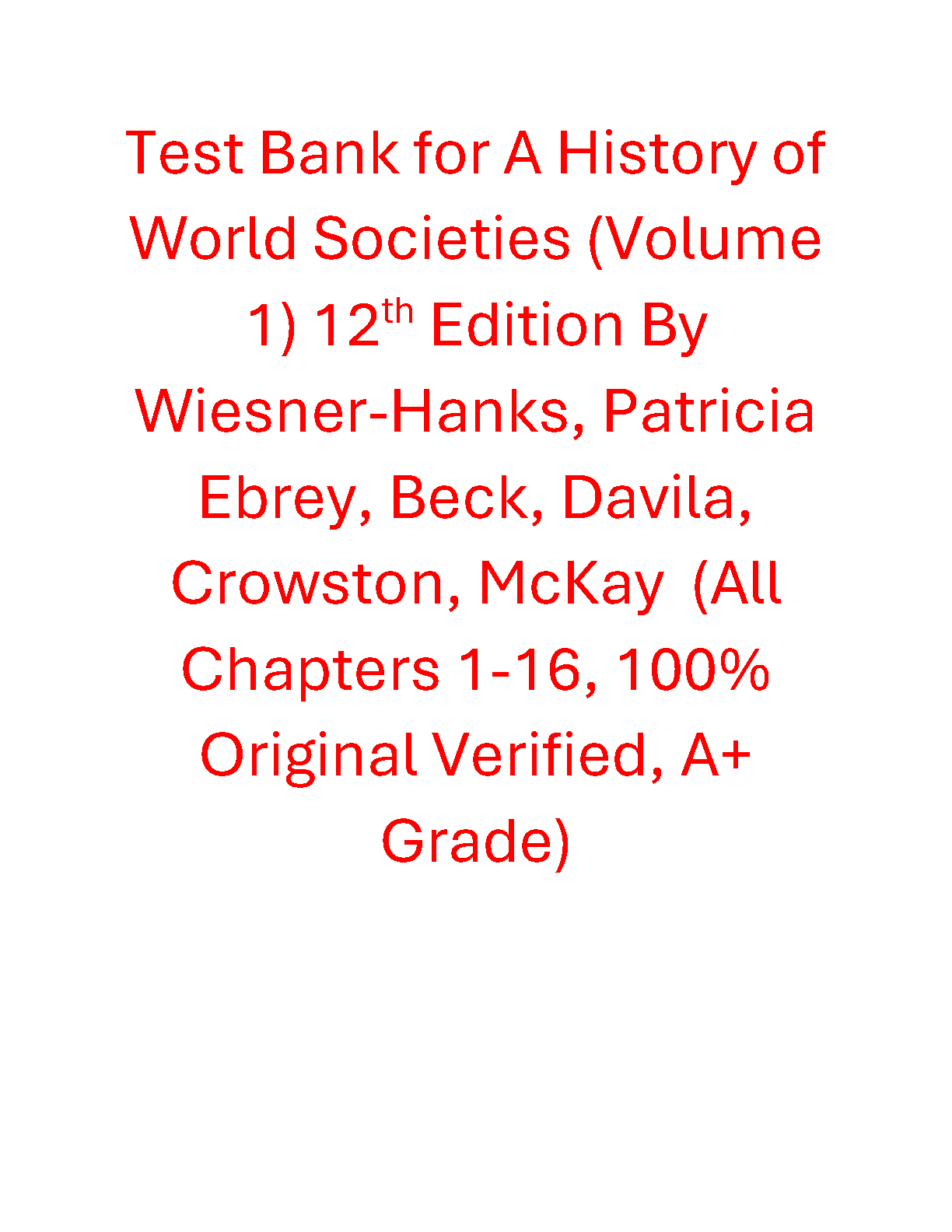 Test Bank for A History of World Societies, 12th Edition by Wiesner-Hanks, Ebrey, Beck, Davila, Crowston, & McKay