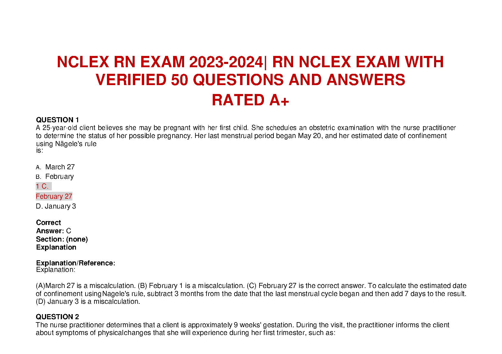 Ace your NCLEX-RN exam with this comprehensive study guide containing 50 verified questions and answers, rated A+. Prepare for success and avoid resits with thi...