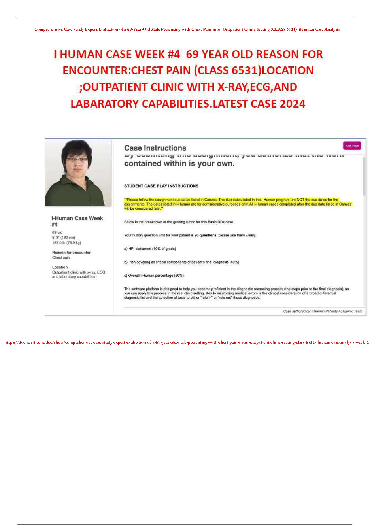 Ace your iHuman Case Week #4 with this comprehensive guide. This 2024 case study expertly evaluates a 69-year-old male presenting with chest pain in an outpatie...