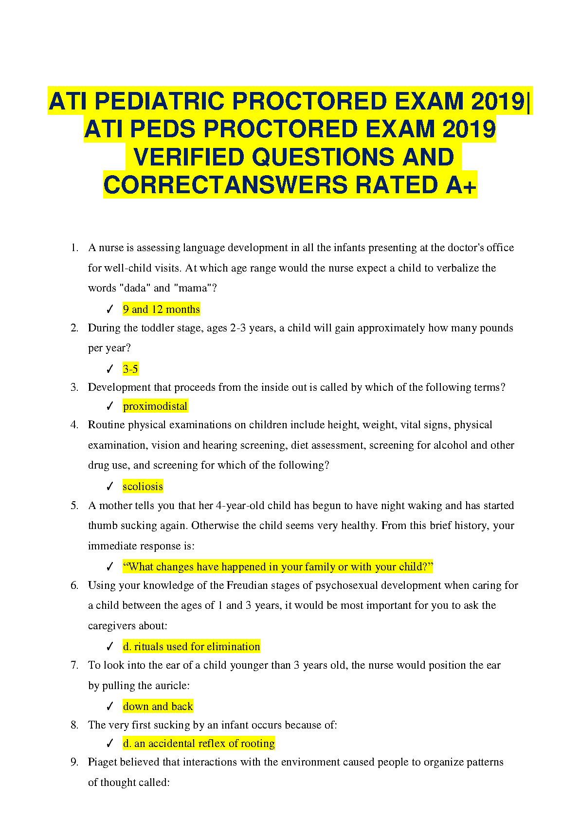 ATI Pediatric Proctor Exam 2019: Verified Questions and Answers Rated A+ - Complete Study Guide for Success