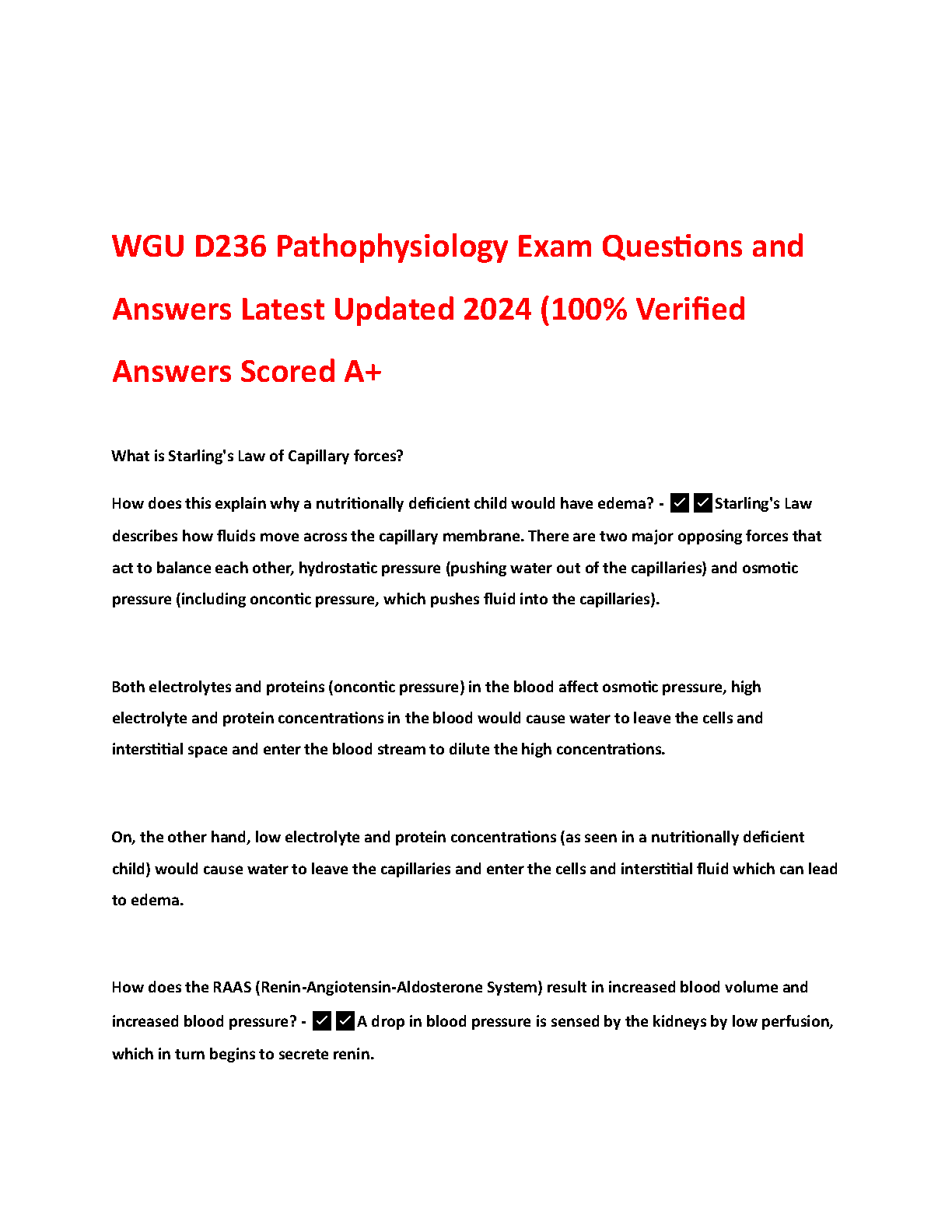Ace your WGU D236 Pathophysiology exam with this latest 2024 edition of exam questions and answers. This resource is 100% verified and guarantees an A+ score. P...