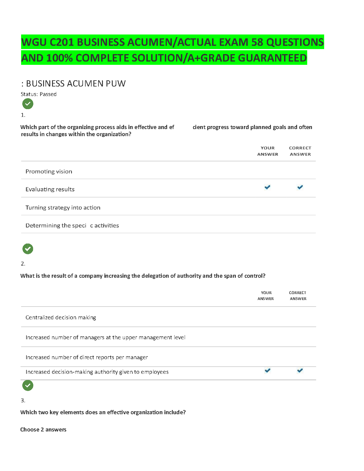 Ace your WGU C201 Business Acumen exam with this comprehensive study guide containing 58 questions and their detailed solutions. Guaranteed to help you achieve an A+ grade and avoid exam resits. Perfect for students aiming for first-attempt success in the 2024/2025 academic year.