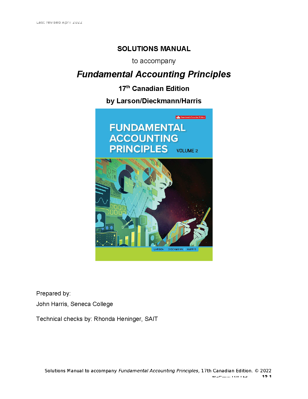 Solutions Manual for Fundamental Accounting Principles, 17th Canadian Edition by Larson, Dieckmann, and Harris