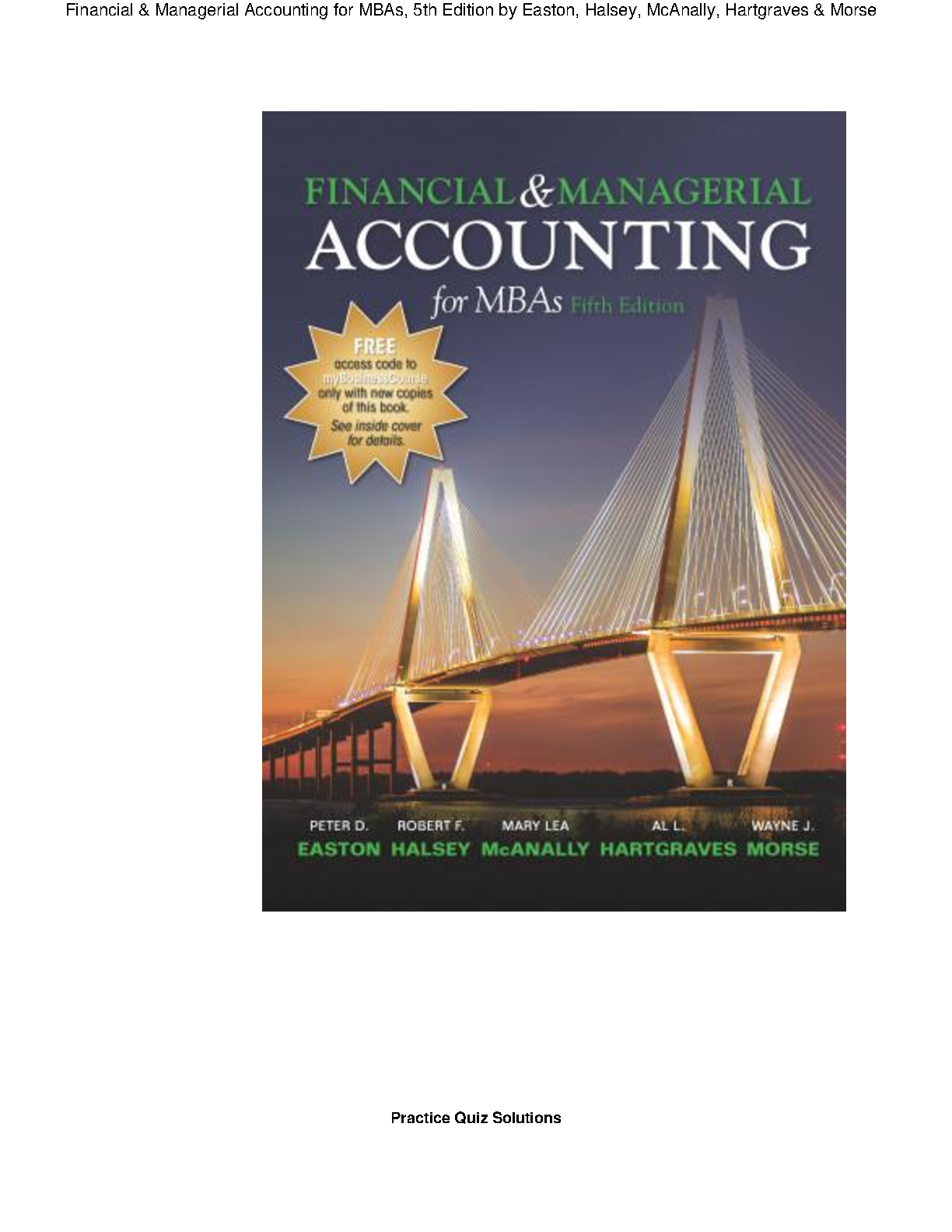 Financial & Managerial Accounting for MBAs, 5th Edition by Easton, Halsey, McAnally, Hartgraves & Morse: Practice Quiz Solutions
