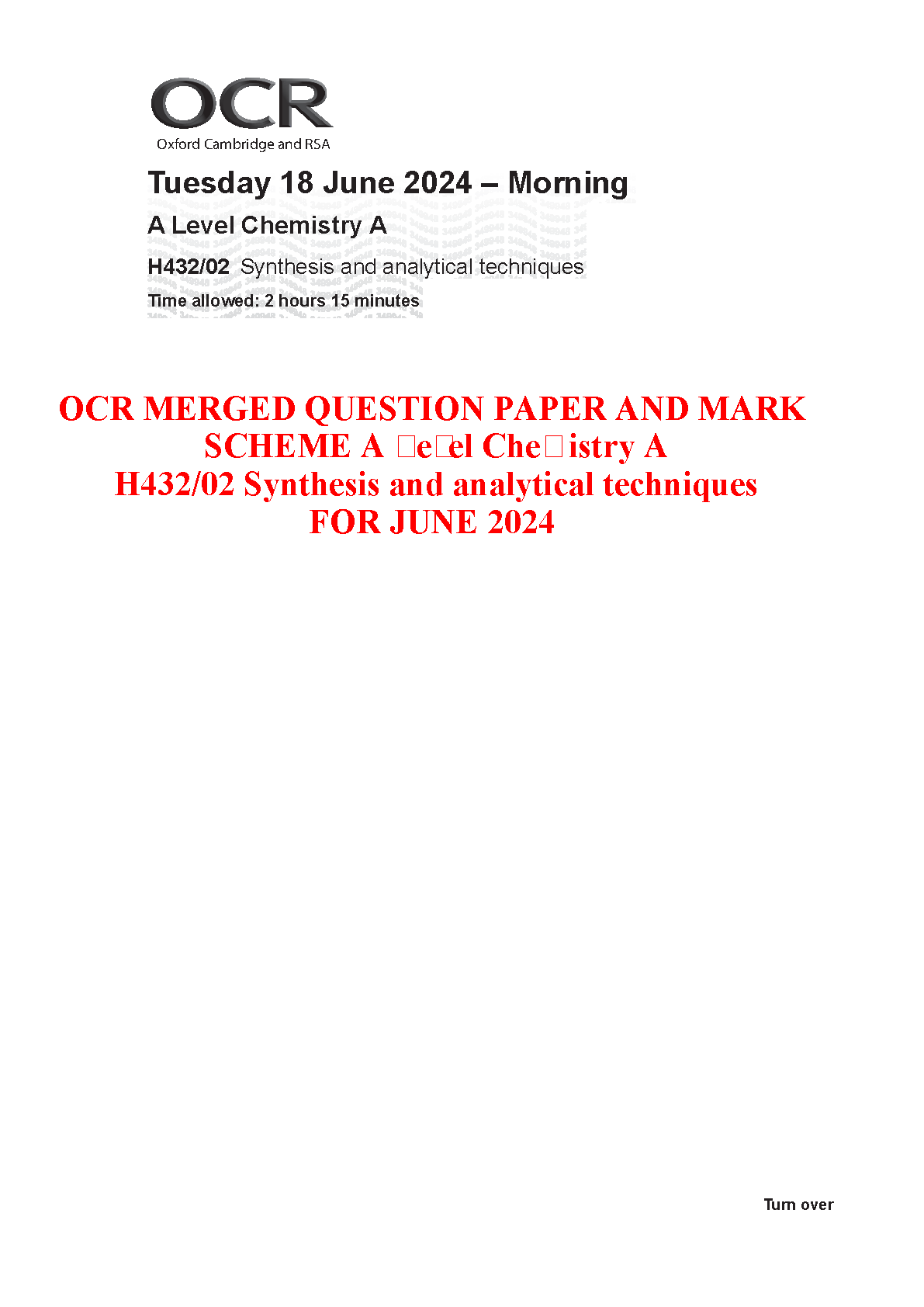 OCR A Level Chemistry A H432/02: Synthesis and Analytical Techniques - June 2024 Merged Question Paper and Mark Scheme