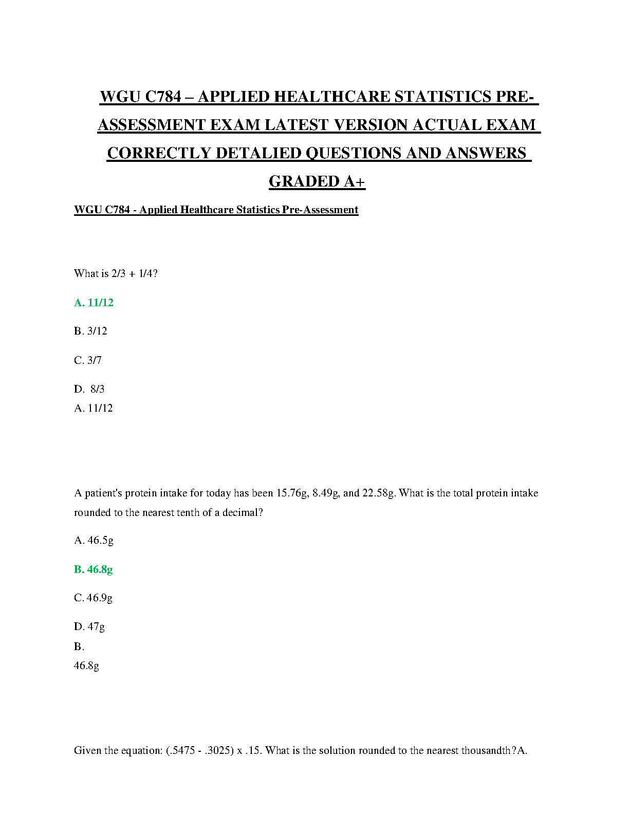 Ace your WGU C784 Applied Healthcare Statistics Pre-Assessment exam on your first try with this comprehensive resource. This study guide provides correctly detailed questions and answers to help you avoid resits and achieve an A+. Prepare for the 2024/2025 academic year with confidence.