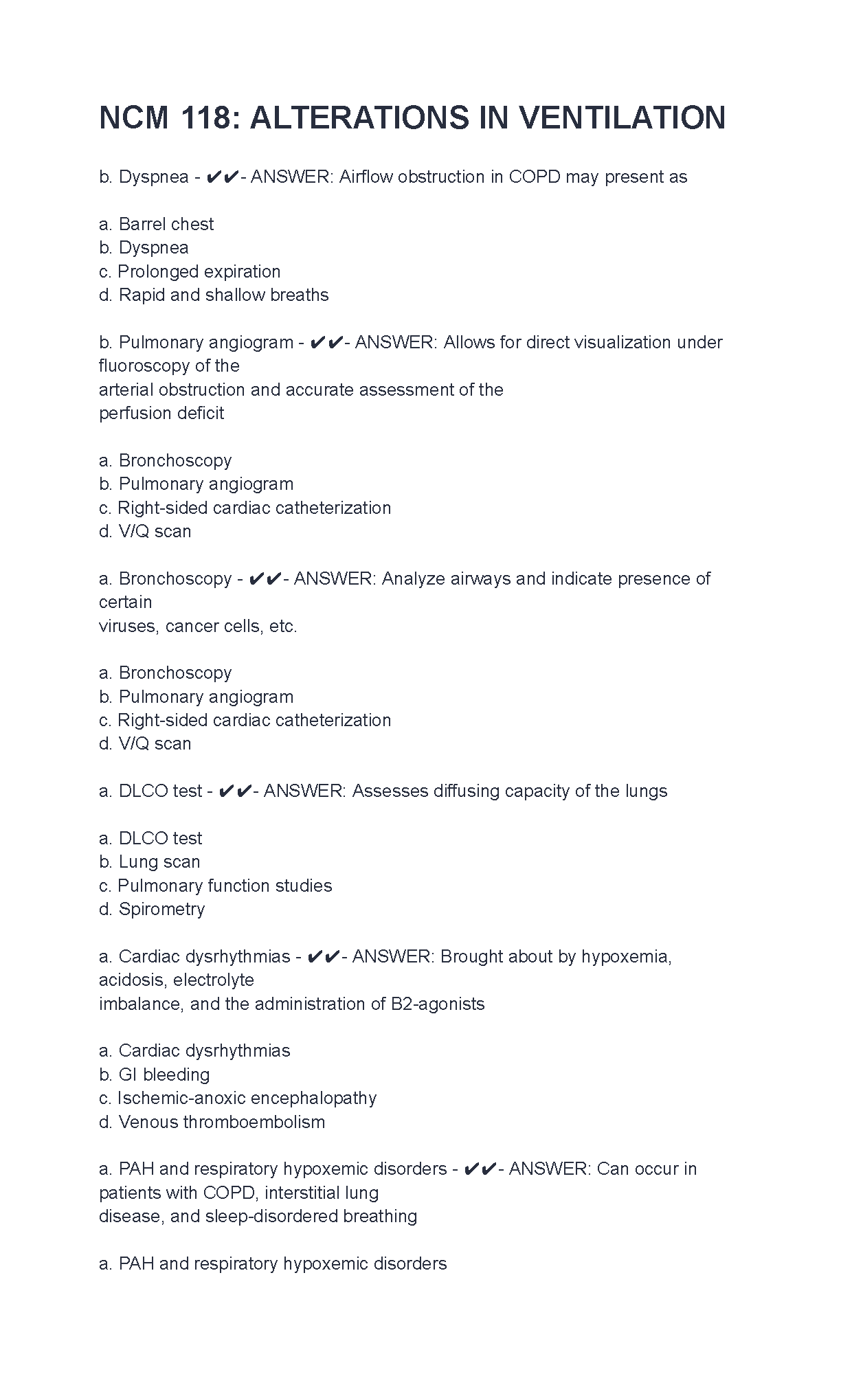 Ace your NCM 118 exams with this comprehensive guide designed for the 2024/2025 academic year. Master alterations in ventilation and related concepts, improving...