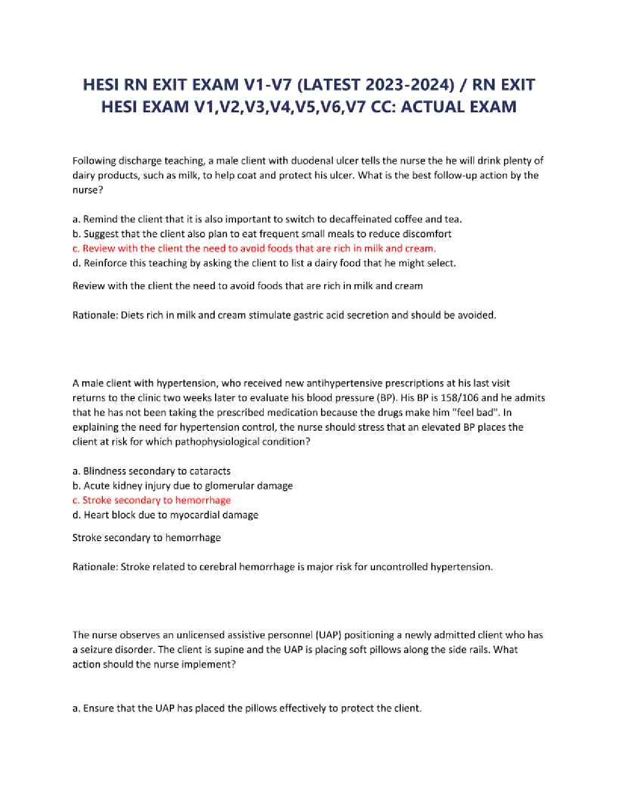 HESI RN Exit Exam V1-V7 (Latest 2023-2024) - Actual Exam Questions and Answers