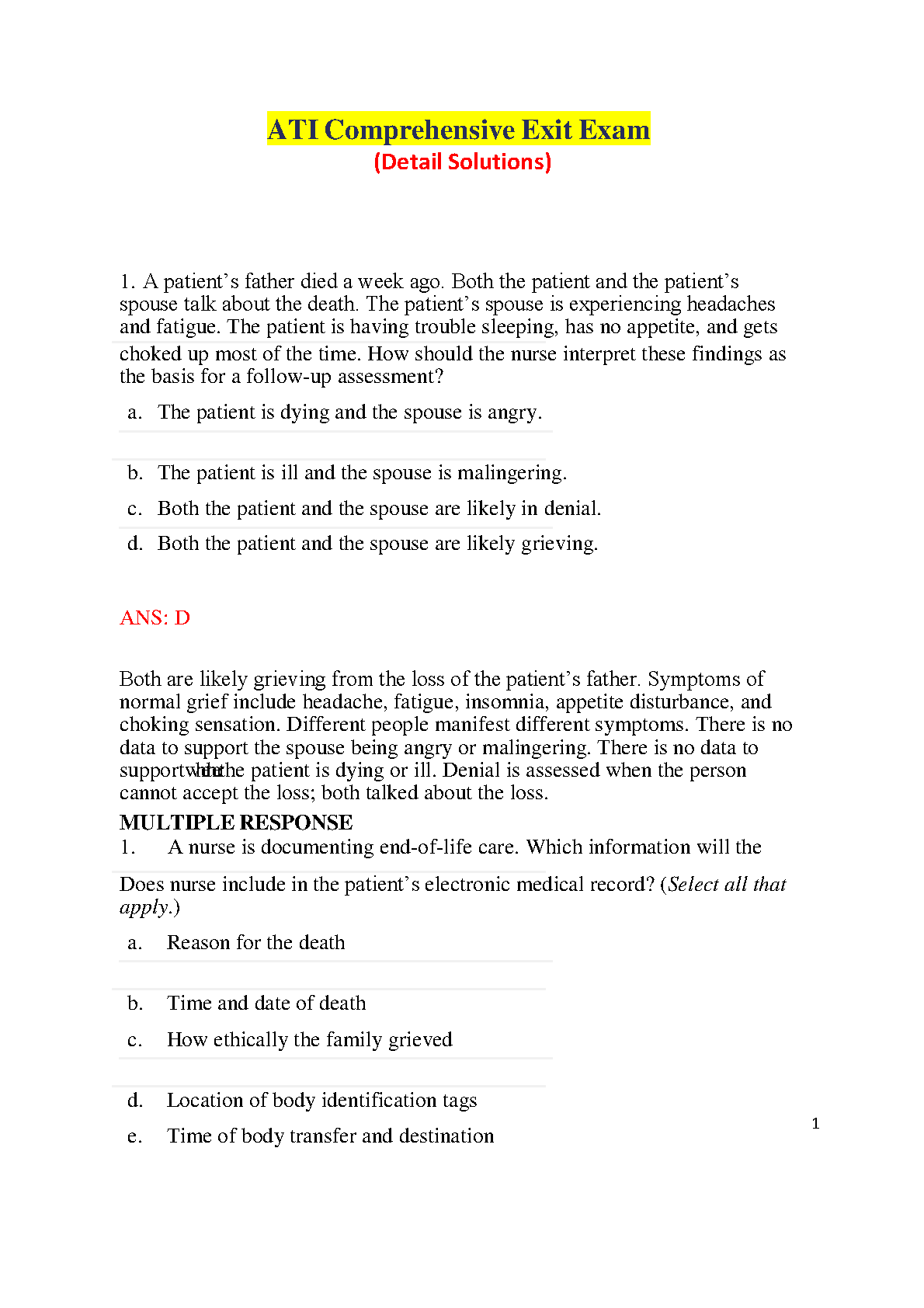 This comprehensive guide provides detailed solutions to the ATI Comprehensive Exit Exam, helping students master the material and pass their exams with confidence. Prepare for success in 2024/2025 with this invaluable resource, designed to help students avoid resits.