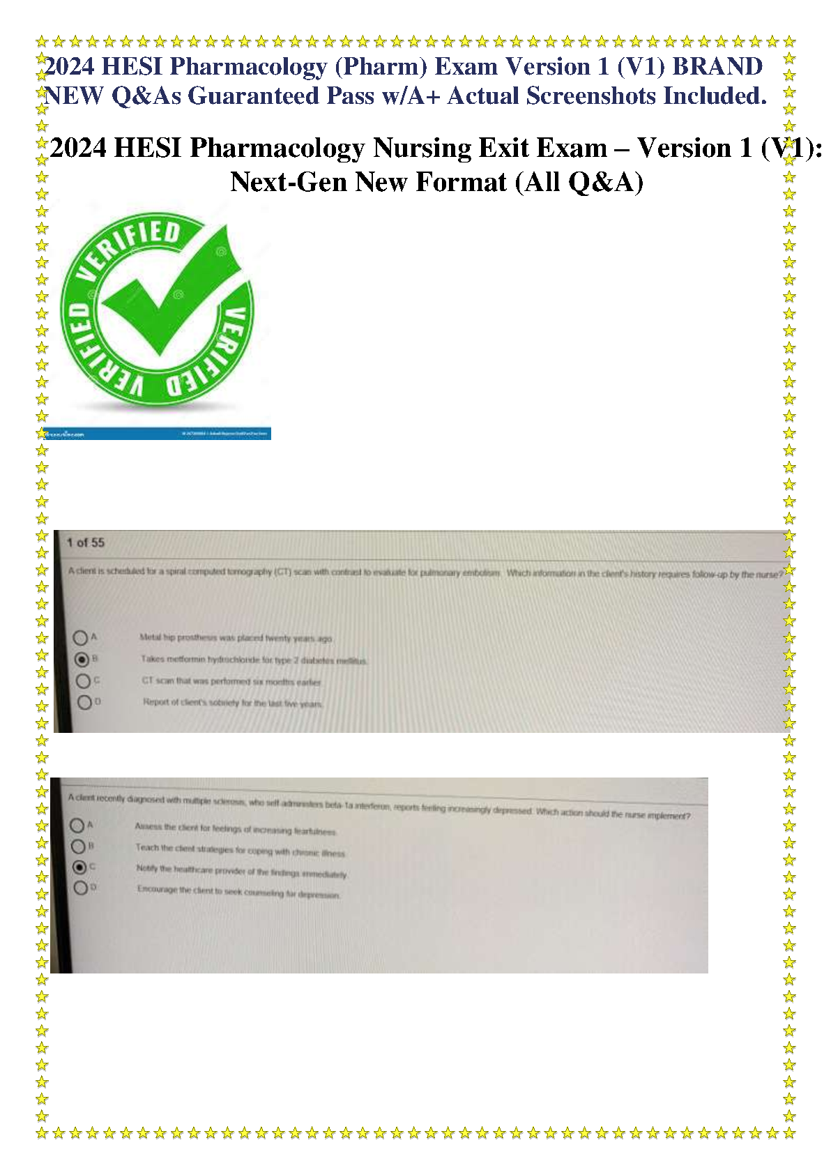 Ace your 2024 HESI Pharmacology exam with this comprehensive study guide. Featuring a next-gen format with all Q&As and actual screenshots, this resource guarantees an A+ and helps avoid resits. Prepare effectively for the nursing exit exam and achieve exam success on your first attempt.