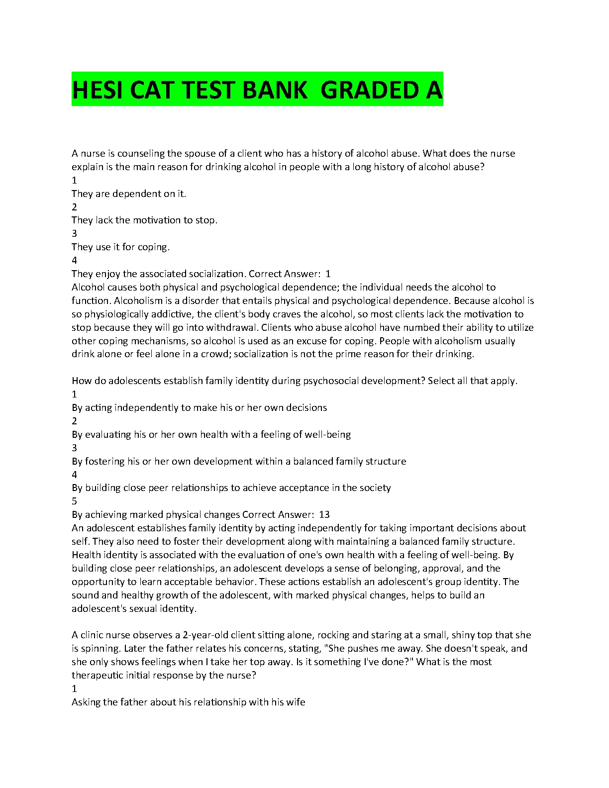 TEST BANK FOR HESI CAT. QUESTIONS WITH 100% VERIFIED ANSWERS. DOWNLOAD THE VERIFIED PAPER ON www.leakedexams.com TO DOWNLOAD PDF INSTANTLY.