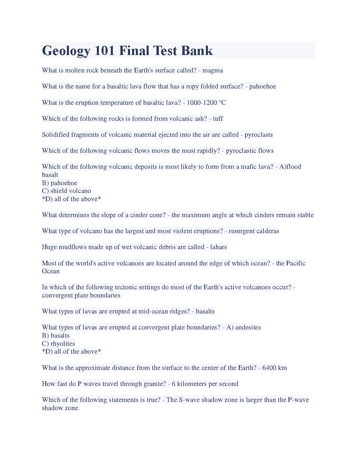Test Bank For Geology 101 Final. LATEST UPDATED VERSION 2025. DOWNLOAD THE VERIFIED PAPER ON www.leakedexams.com TO DOWNLOAD PDF INSTANTLY.Â