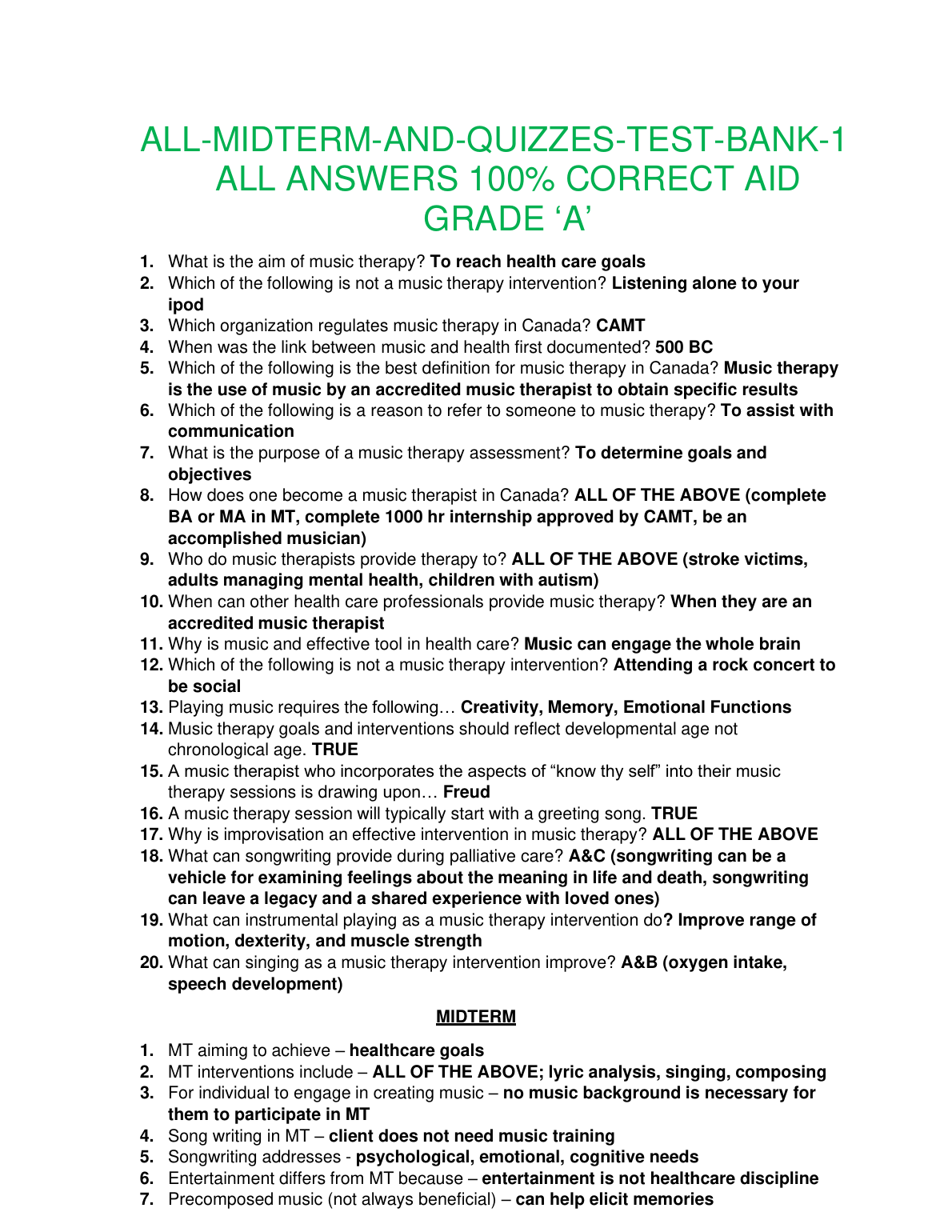 TEST BANK FOR ALL MIDTERM AND QUIZZES. QUESTIONS WITH ALL ANSWERS 100% CORRECT AID. DOWNLOAD THE VERIFIED PAPER ON www.leakedexams.com TO DOWNLOAD PDF INSTANTLY...