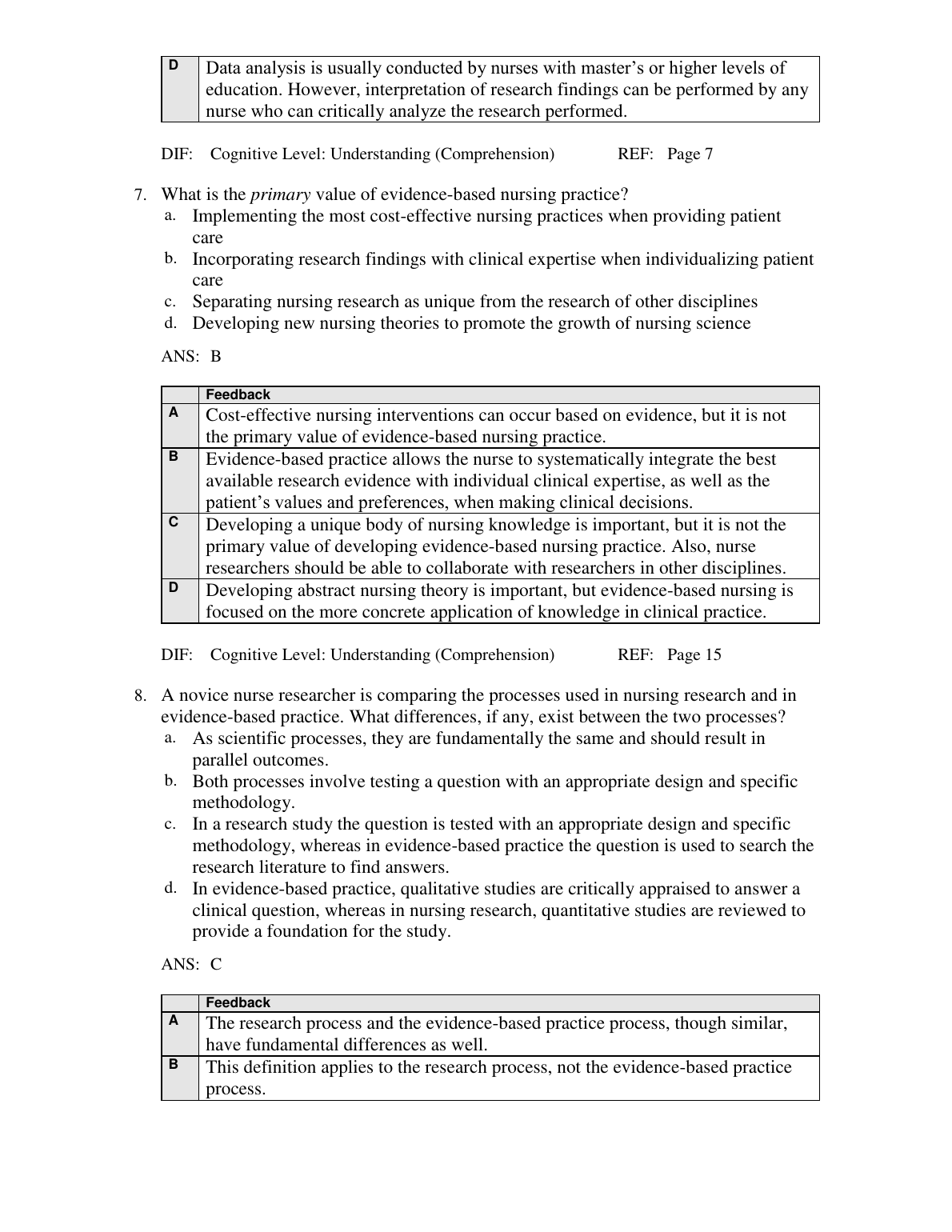 Test bank For Nursing Research: Methods and Critical Appraisal for Evidence Based Practice 8th editon by Lobiondo Wood. DOWNLOAD THIS VERIFIED PAPER ON www.leakedexams.com TO DOWNLOAD PDF INSTATNTLY.