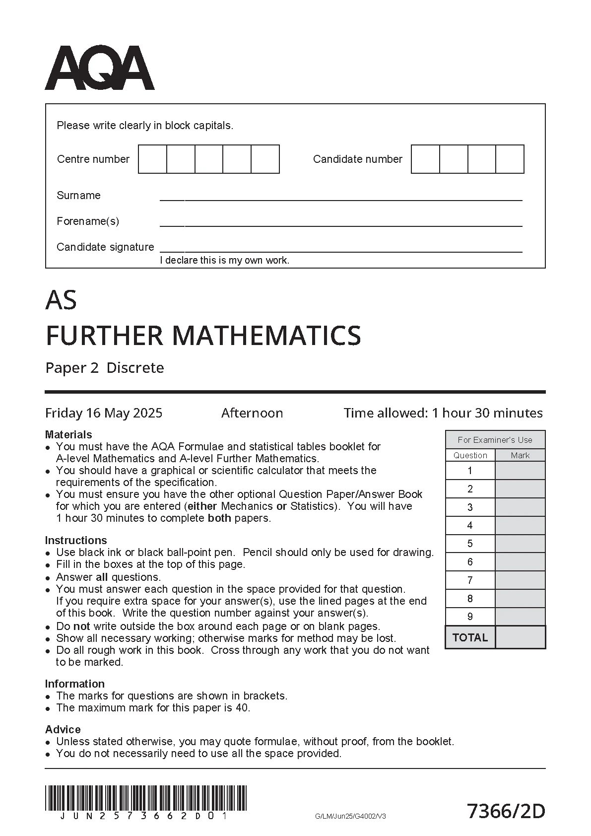 AQA AS FURTHER MATHEMATICS PAPER 2 2025 (7366/2)