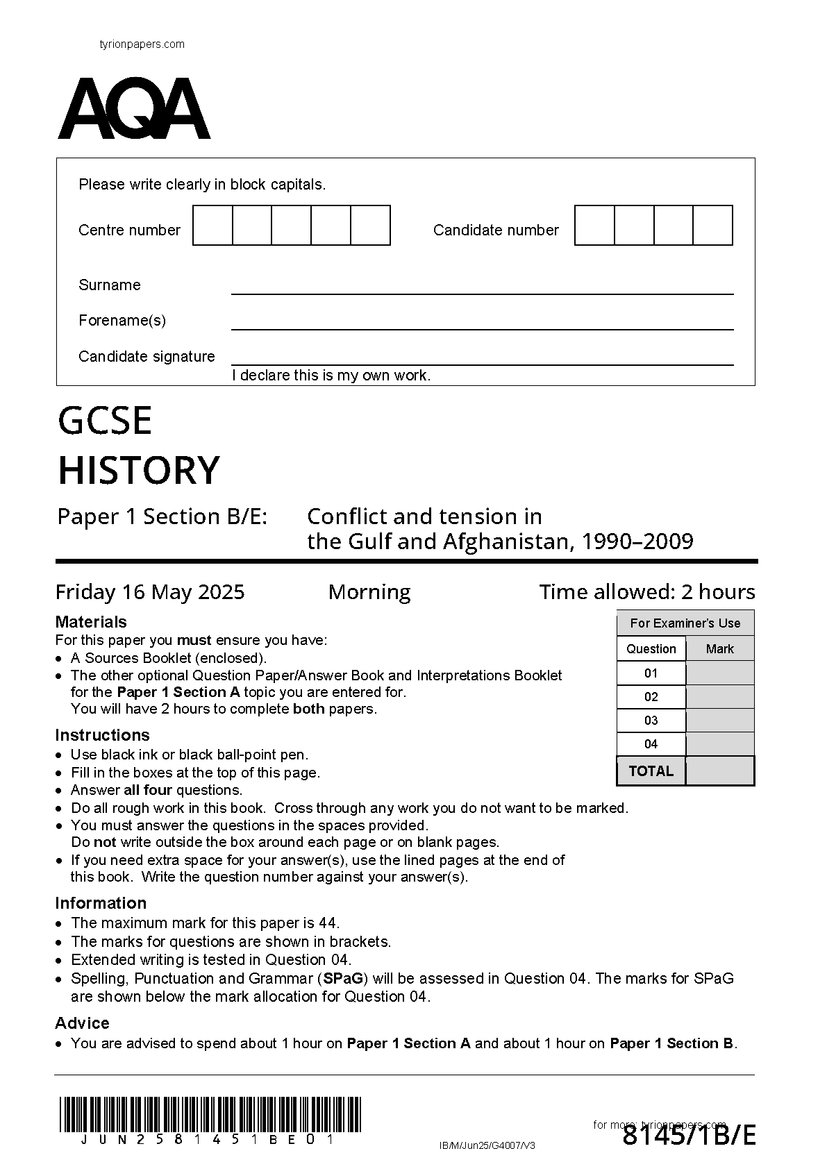 MERGED 2025 AQA GCSE HISTORY Paper 1 Section B/E Question Paper and Mark Scheme (8145/1B/E: Conflict and tension in the Gulf and Afghanistan, 1990–2009)