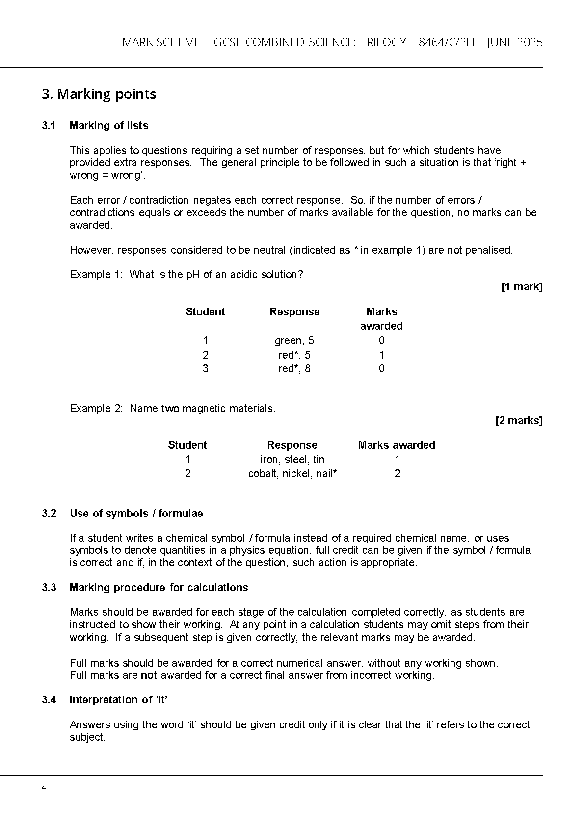 MERGED 2025 AQA GCSE COMBINED SCIENCE TRILOGY Chemistry Paper 2H Question Paper and Mark Scheme (8464/C/2H: Higher Tier)