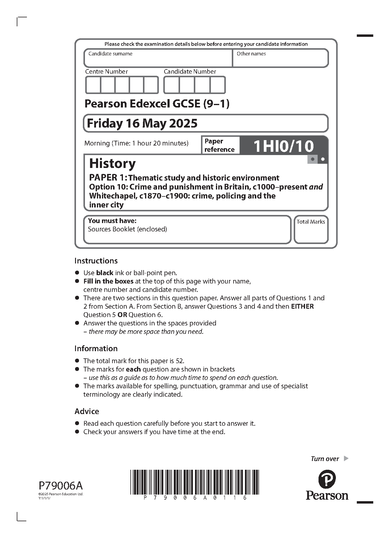 2025 Pearson Edexcel GCSE History Paper 1 and Mark Scheme (1HI0/10: Thematic study and historic environment) MERGED